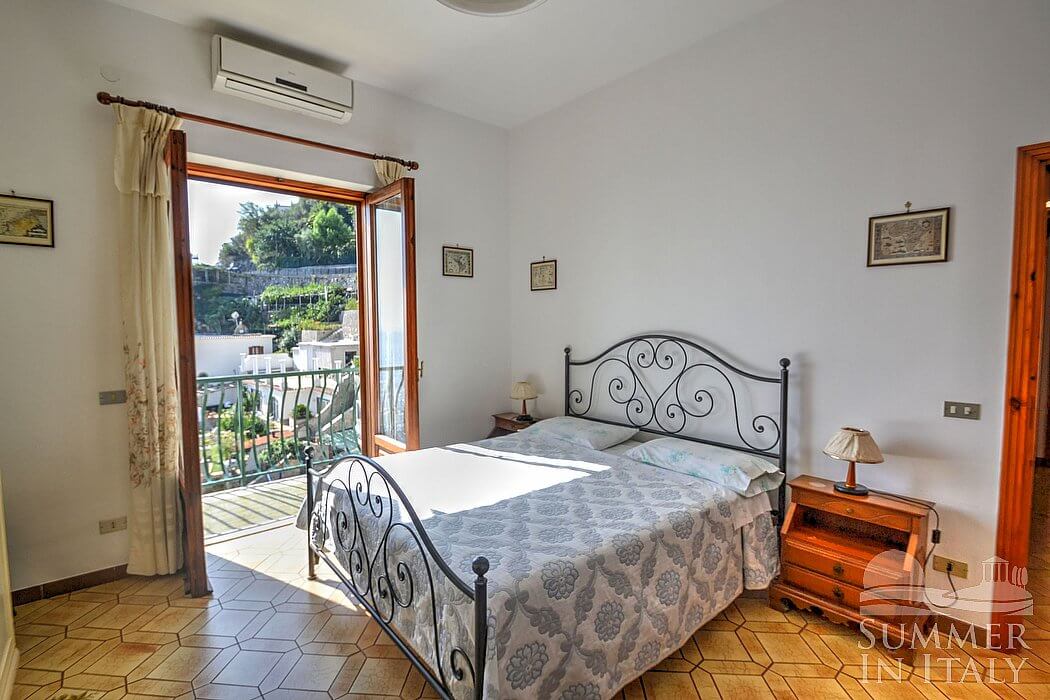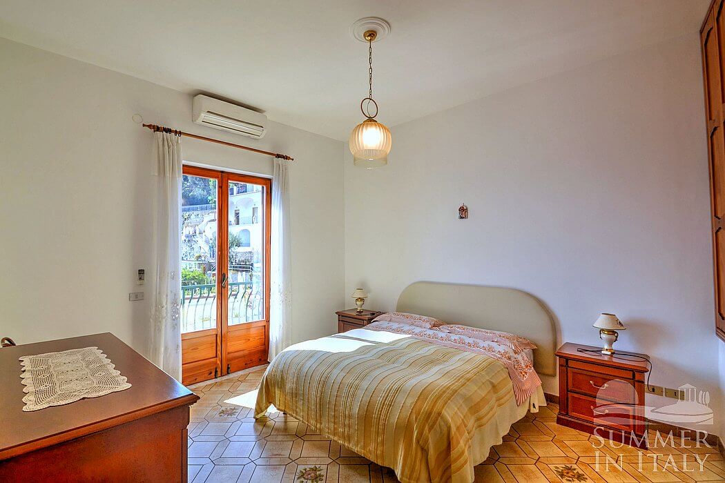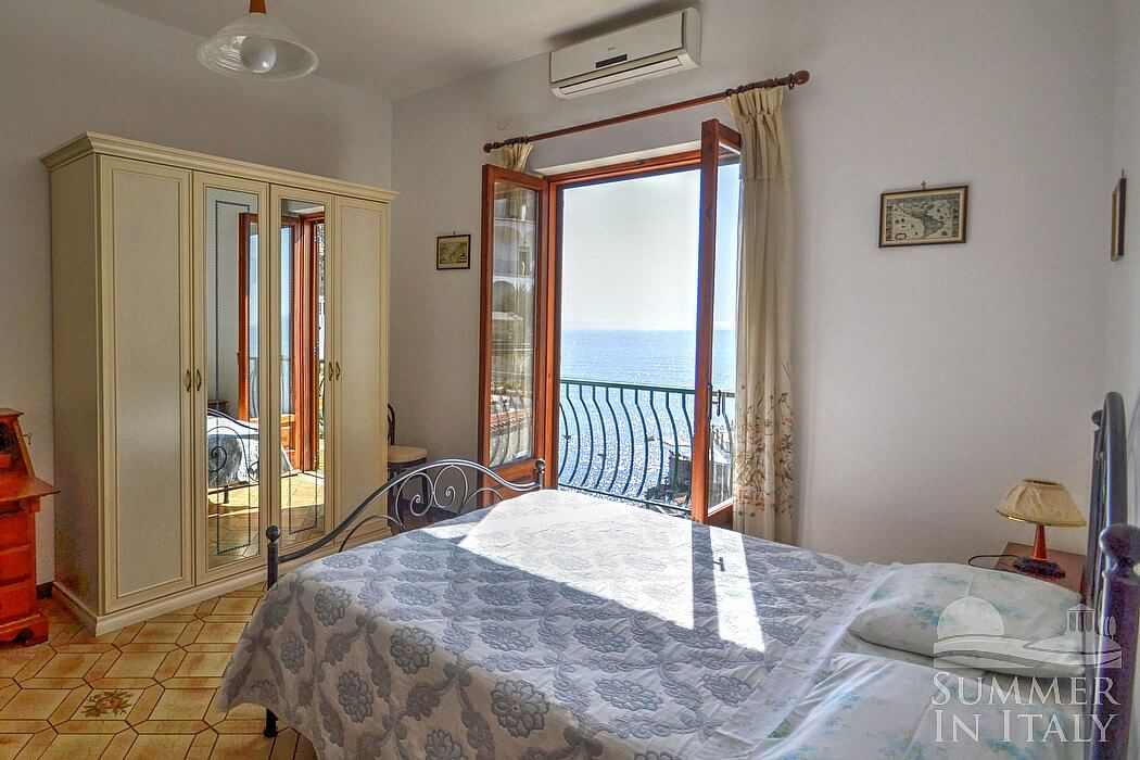 You will be able to enter the second bedroom from the corridor. The bedroom has a matrimonial bed (160 cm/62 inches, wider than a queen-size bed). From the bedroom you will be able to enter the small balcony with a view of the sea and of the coastline through a French door. The bedroom is equipped with an air conditioning/heating unit.