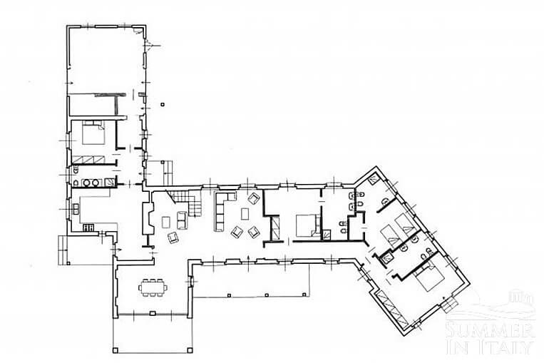 In the garden you will also find an Annex, with a matrimonial bedroom, a kitchen and a bathroom, available upon request and at an additional cost, in order to sleep up to 10 people.