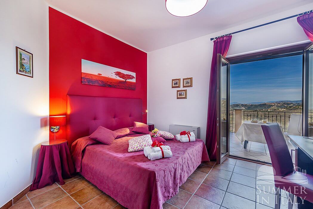 You will be able to enter the first bedroom through an access area. The bedroom has a matrimonial bed (160 cm/63 inches, wider than a queen-size bed). In this room you will find a satellite television (local channels). From the bedroom you will be able to enter a terrace through a French door. The bedroom is equipped with an air conditioning/heating unit. This bedroom has an en-suite bathroom, equipped with a washbasin, a toilet and a fully enclosed shower.