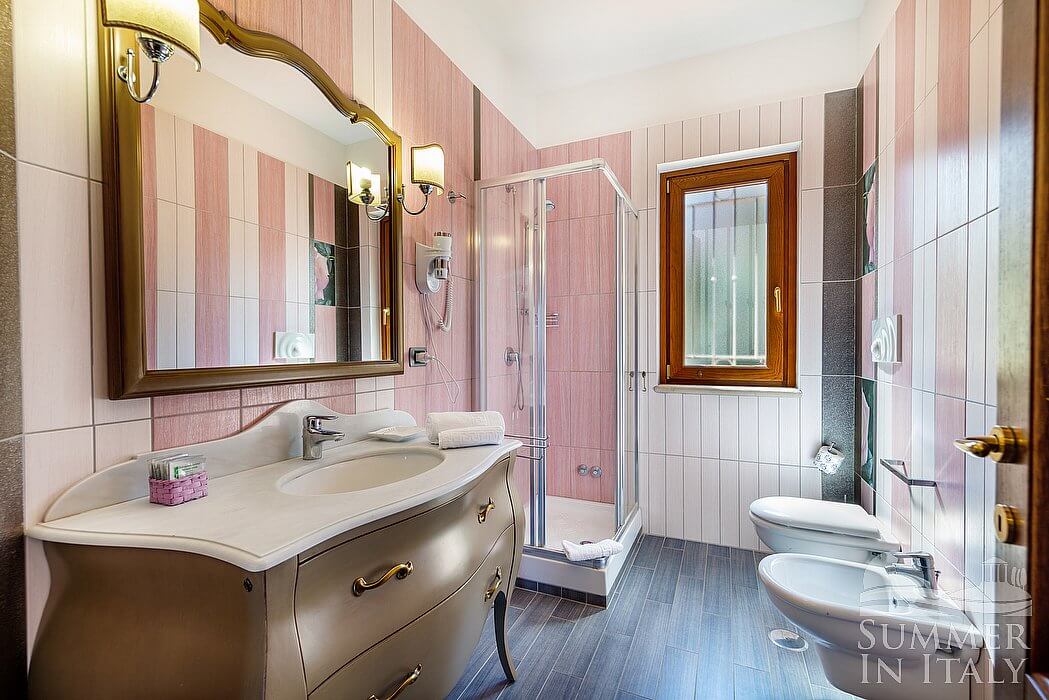 The swimming pool is 7 meters (23 feet) large by 16 meters (52 feet) long. The area is equipped with a table, chairs, sun umbrellas and sun loungers. From the swimming pool you will enjoy a broad view of the greenery and of the sea at a distance. You will share the pool with guests staying at another nearby villa, and there will be an area reserved for your exclusive use. Swimming caps are required. The swimming pool is open from mid-May until mid-October, from 9 am to 8 pm.