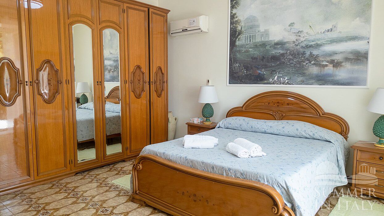 Villa Ametrino is a welcoming two-story villa situated in a quiet location, a few minutes from the town center. It sleeps ten people. From Villa Ametrino you will enjoy a charming view of the valley and of the greenery. Villa Ametrino is 350 square meters (3770 square feet). It features a private swimming pool, a private jacuzzi pool, a private terrace, two private patios, a private garden, air conditioning (please read description below to check in which rooms the units are installed), winter heating and WI-FI Internet access.
