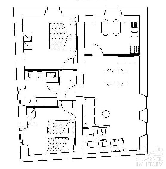 Villa Angelisa B is located on the top floor of an ancient farmhouse. You will reach it from the parking area going up a route that cuts through the garden and includes approximately 26 stairway steps.