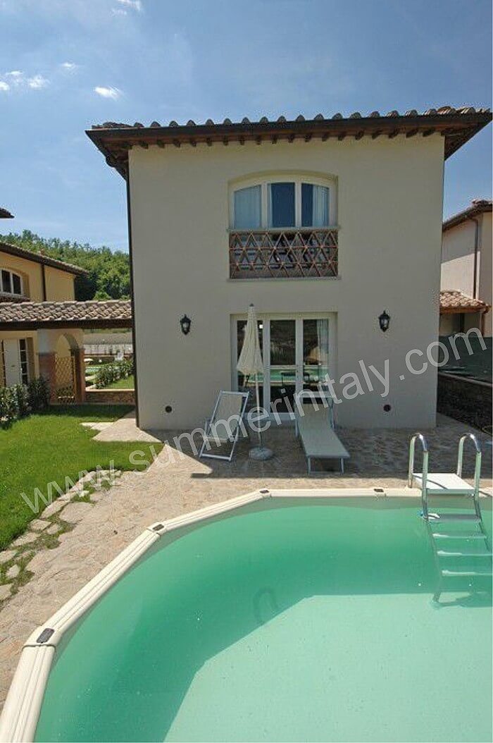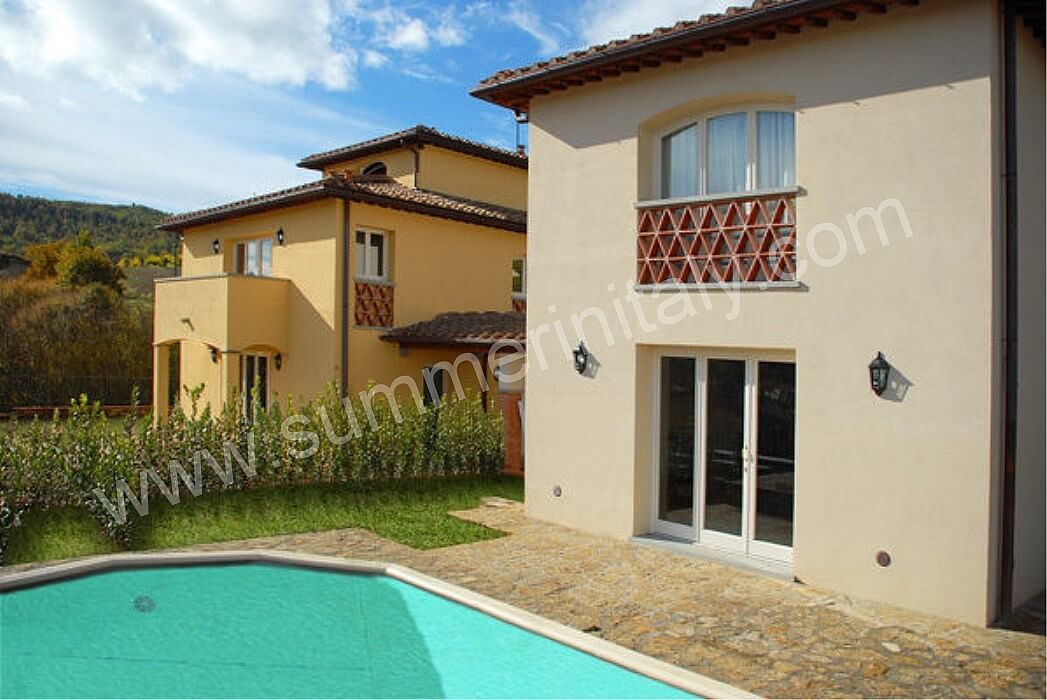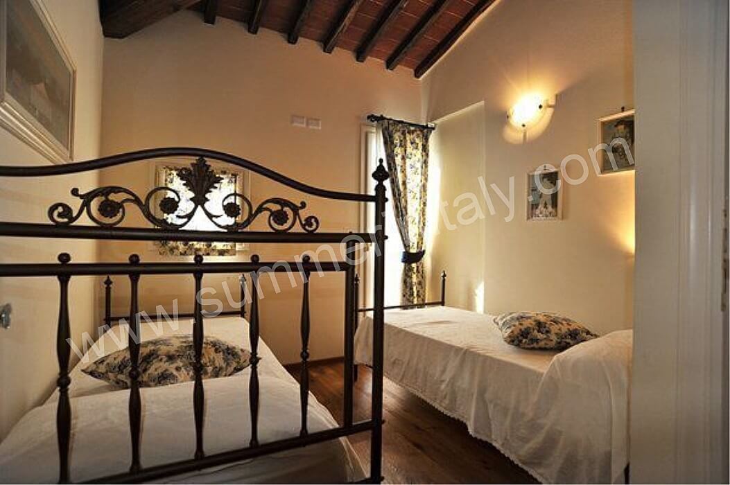 Villa Arborella is a bright and elegant two-story villa situated a few minutes from the town center. It sleeps six people. From Villa Arborella you will enjoy a charming view of the valley and of the greenery. Villa Arborella is 120 square meters (1290 square feet). It features a private swimming pool, a private garden, air conditioning (please read description below to check in which rooms the units are installed), winter heating and WI-FI Internet access.