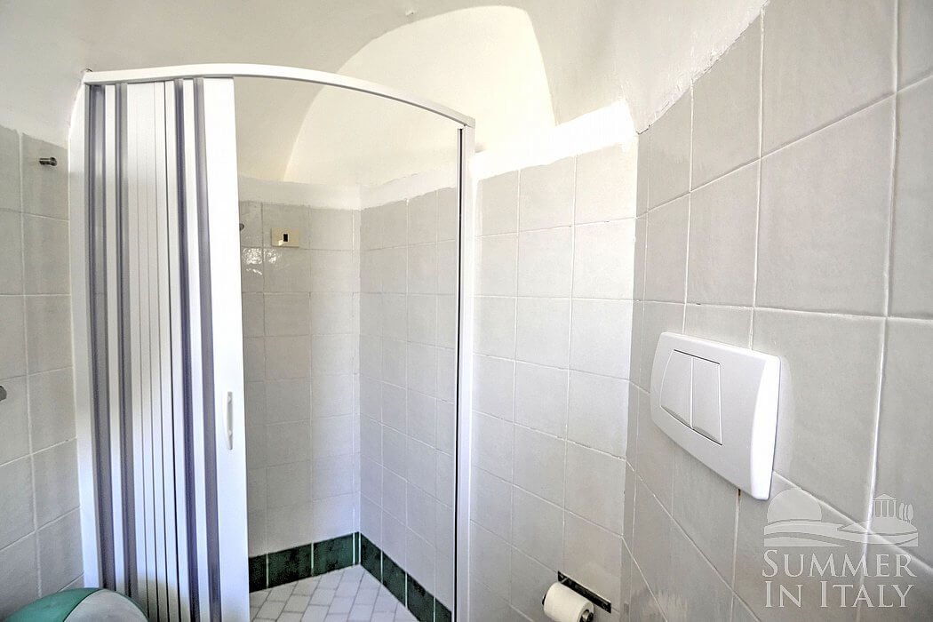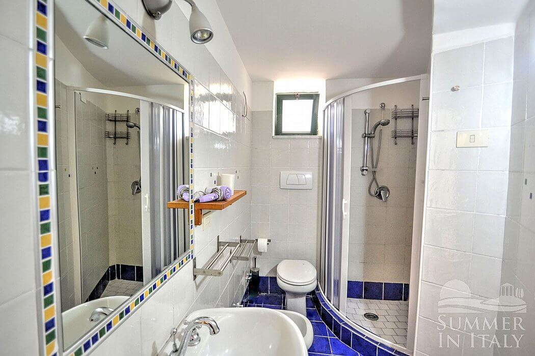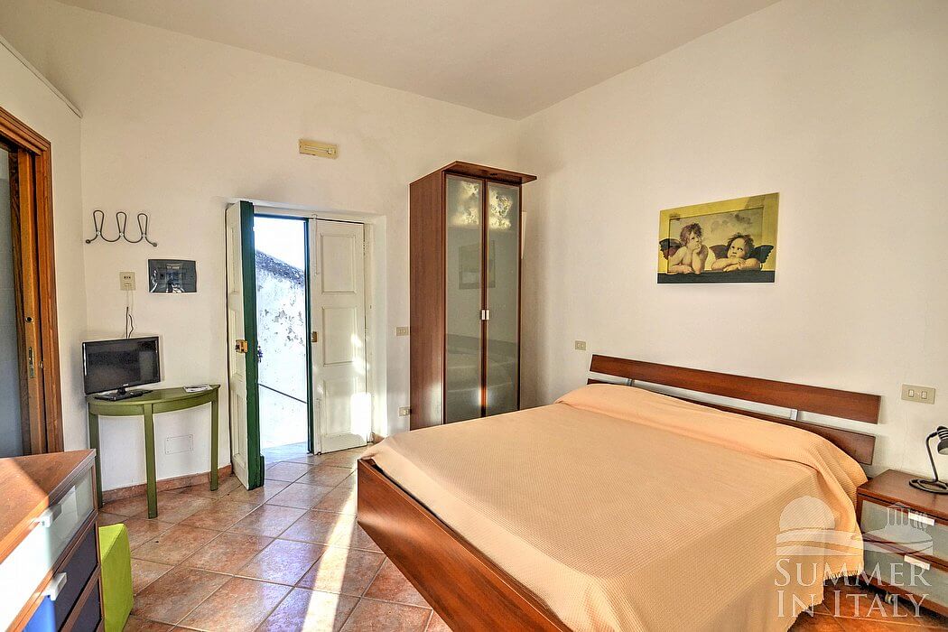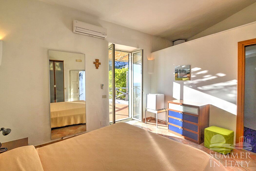 You will be able to enter the bedroom from the first terrace along an external stairway. The bedroom has a matrimonial bed (160 cm/63 inches, wider than a queen-size bed). In this room you will find a television (local channels). From the bedroom you will be able to enter the second terrace with a view of the sea and of the coast of Amalfi through a French door. The bedroom is equipped with an air conditioning/heating unit. This bedroom has an en-suite bathroom, equipped with a washbasin, a toilet, a fully enclosed shower and a hairdryer.