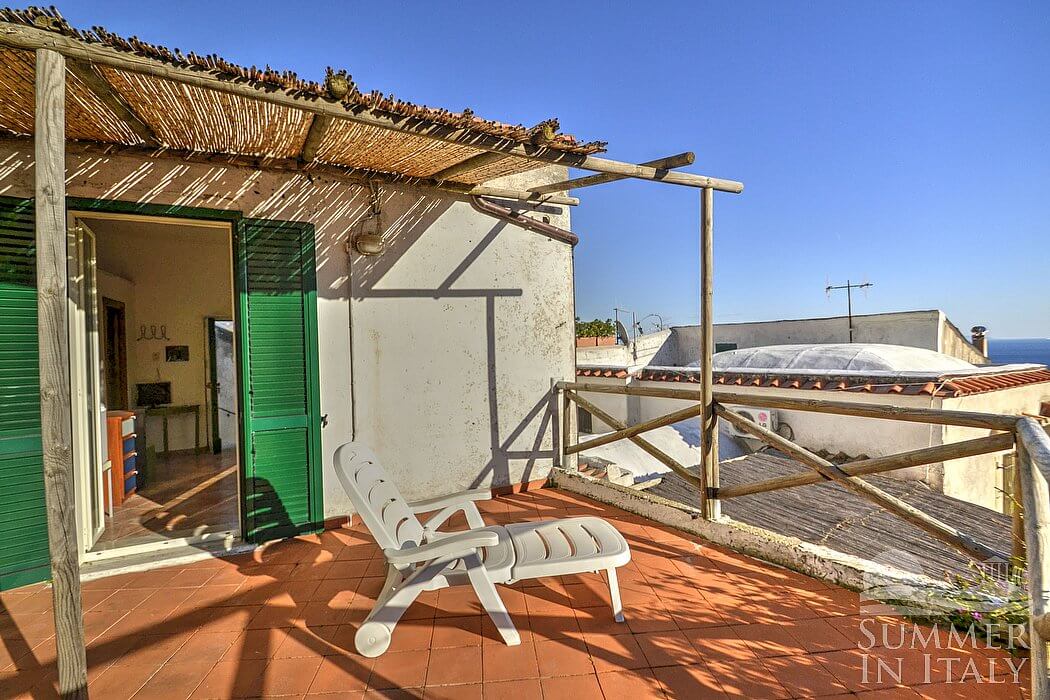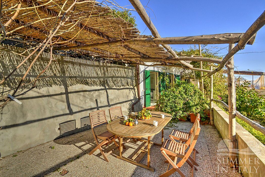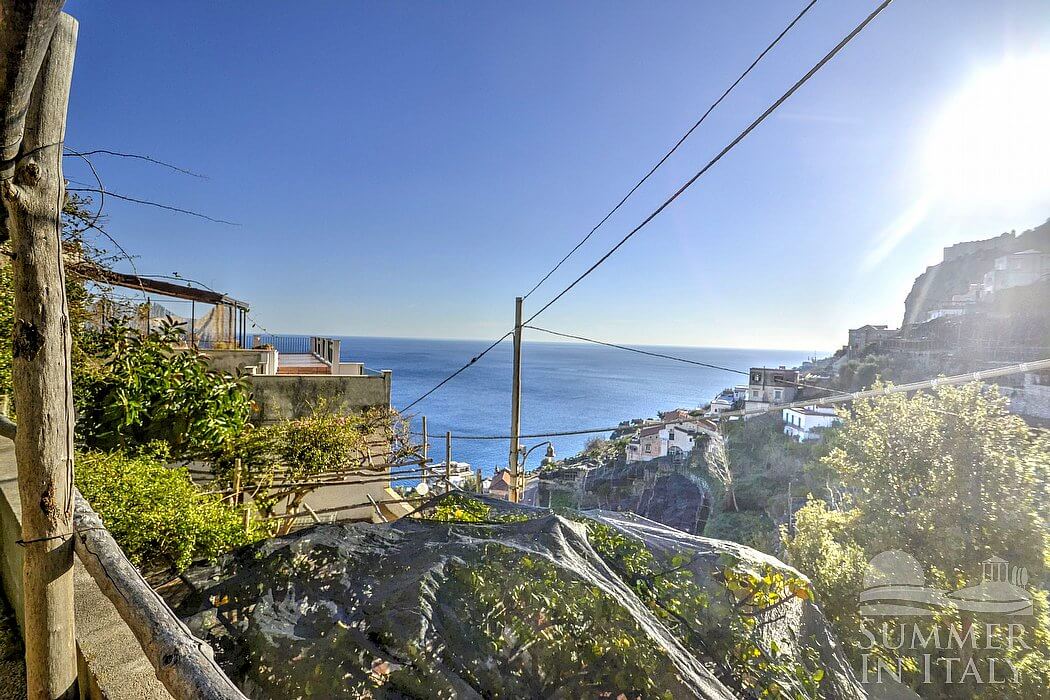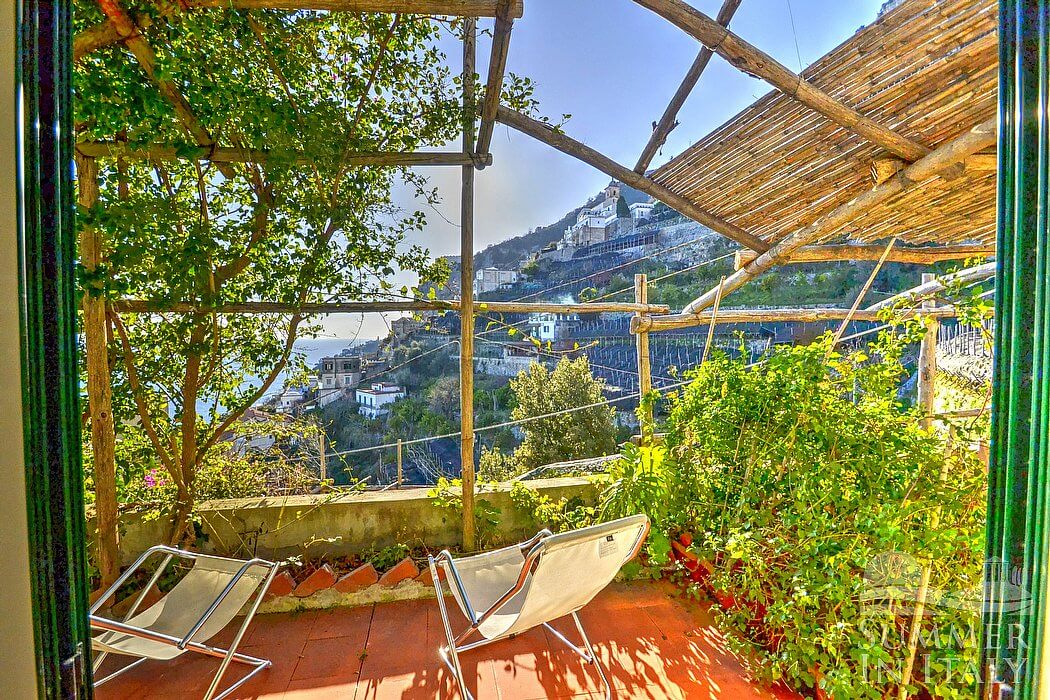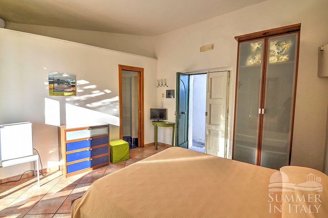 You will reach it walking uphill for approximately 20 meters (20 yards) along a short pedestrian alley. Once beyond the main door, you will find yourself in a small yard, closed on three sides by white walls, and open on the fourth side on a spectacular view of the coast and of the sea.