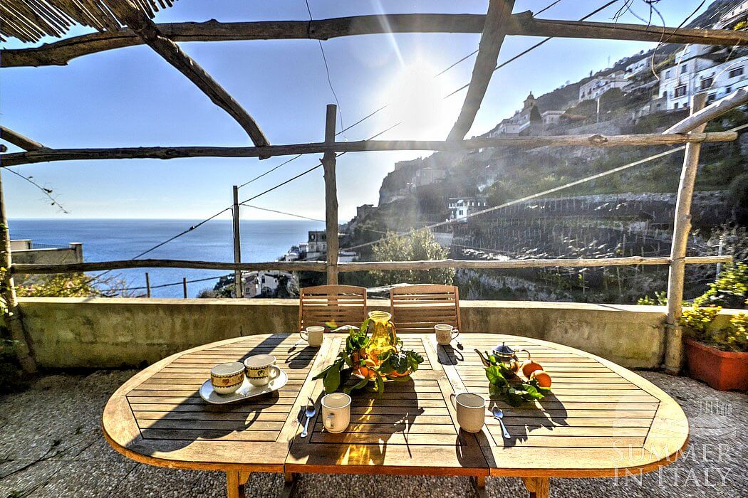 The building is part of a bunch of ancient houses that cling to the top of a rocky spur, all facing the sea and the sun, and surrounded by lemon growths. Here the authentic locals of Amalfi live their life, with its quiet rhythm, and there is no crowd of tourists.