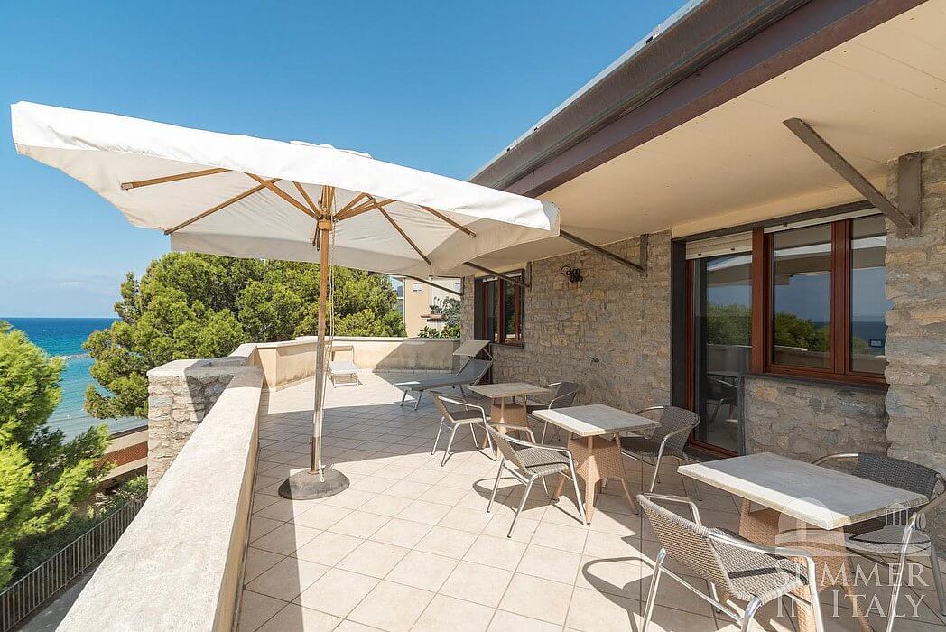 Villa Barbara Uno is a bright apartment that covers the entire top floor of a villa which faces the sun and the sea. It sleeps six people. From Villa Barbara Uno you will enjoy a thrilling view of the sea and of the coastline. Villa Barbara Uno is 70 square meters (750 square feet). It features direct access to the beach and to the sea, a wide private terrace with a view of the sea, air conditioning (please read description below to check in which rooms the units are installed) and winter heating.
