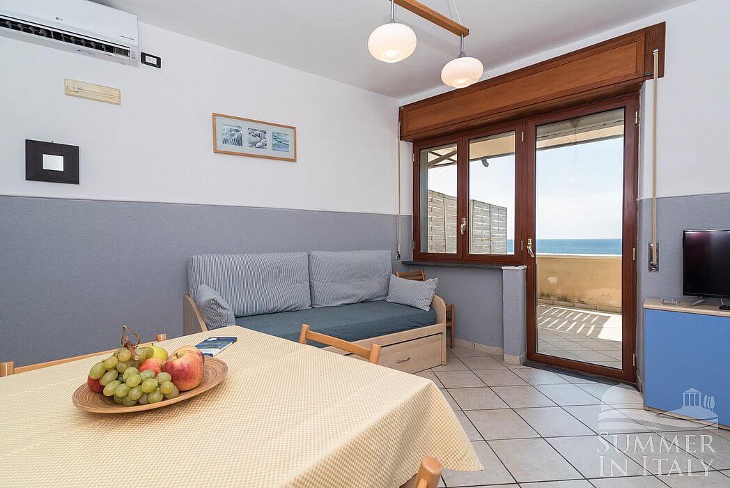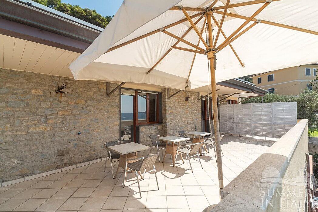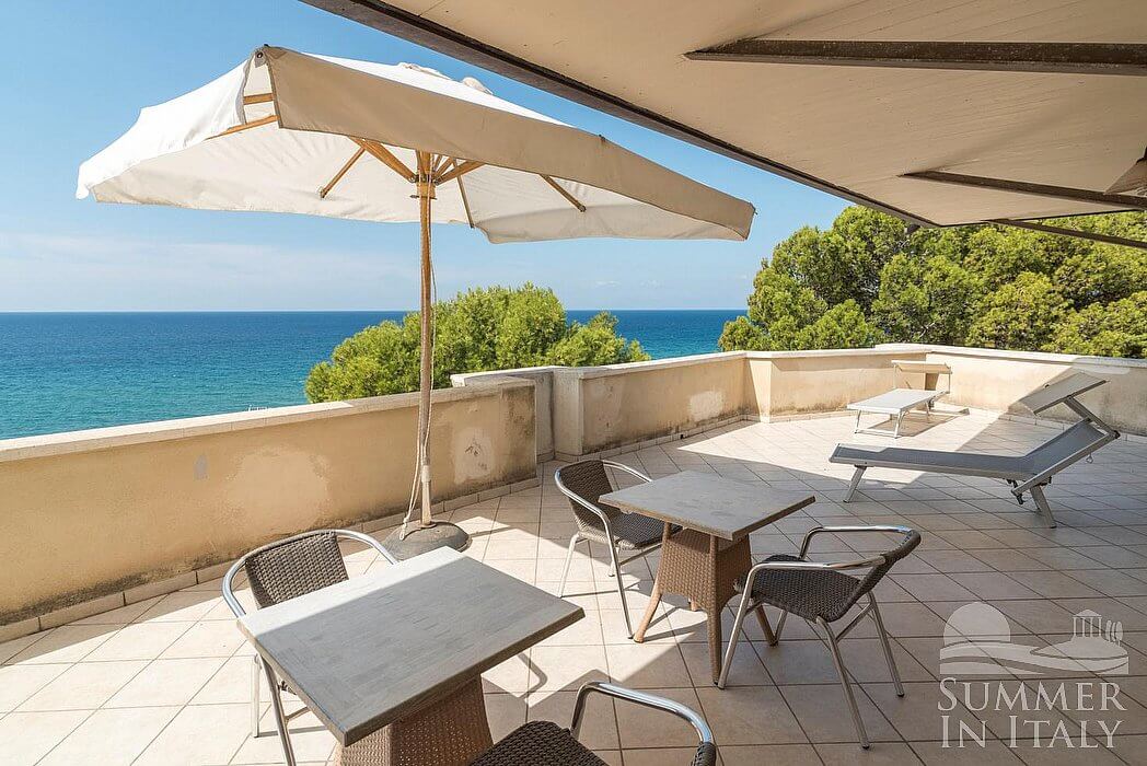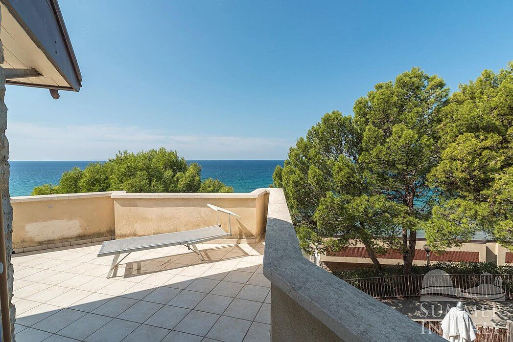 From the property you will have a direct access to the sea and to a public sandy beach. You will reach it from the complex going down approximately 30 stairway steps. The area is equipped with sun umbrellas, deck chairs and sun loungers. The access to the sea is shared with other guests staying at the complex, as well as with non-resident guests. The facilities are available from the beginning of June until the end of September.
