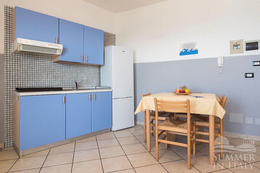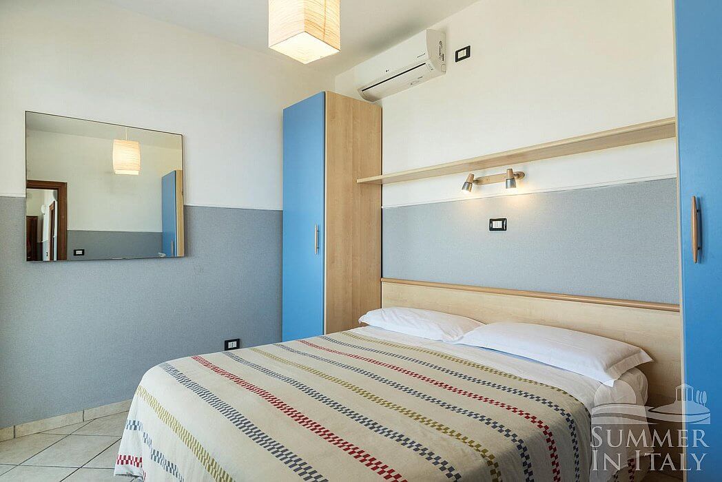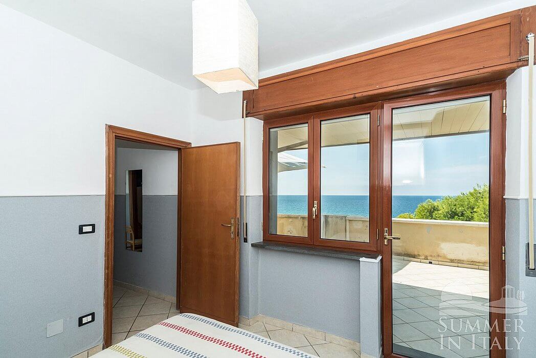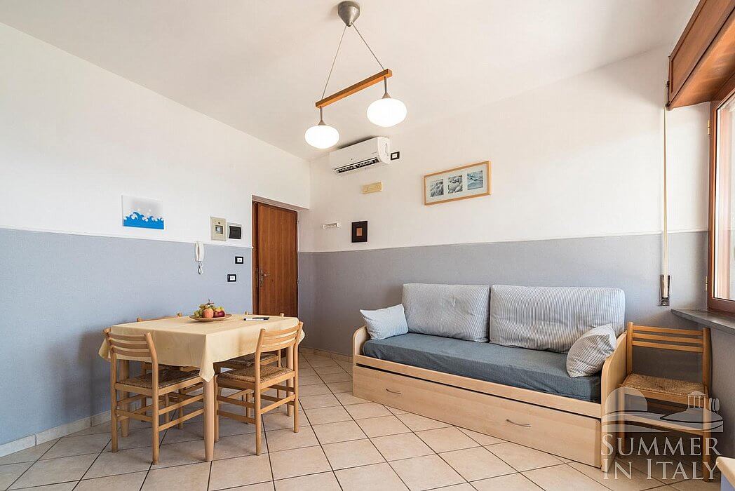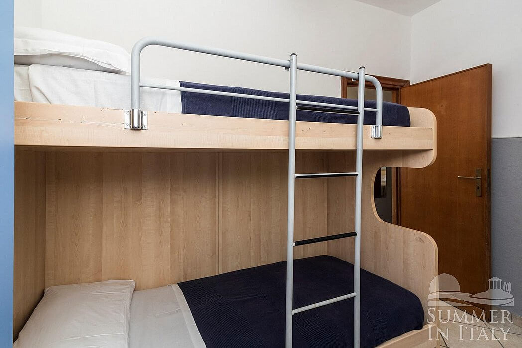 From the property you will have a direct access to the sea and to a public sandy beach. You will reach it from the complex going down approximately 30 stairway steps. The area is equipped with sun umbrellas, deck chairs and sun loungers. The access to the sea is shared with other guests staying at the complex, as well as with non-resident guests. The facilities are available from the beginning of June until the end of September.