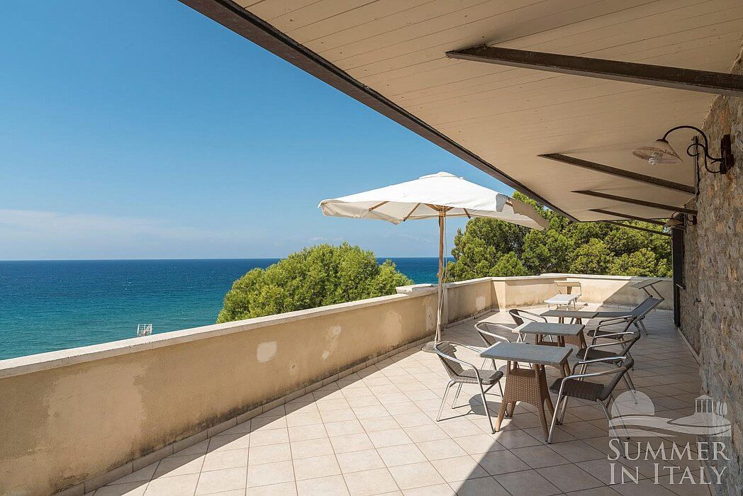 From every point of the complex and from the terraces of the villas you will have a very close view of the sea, of the arch made by the golden beach below, and of the bay of Santa Maria di Castellabate. The view is charming from sunrise to sunset, and the sunsets on the sea are particularly suggestive.