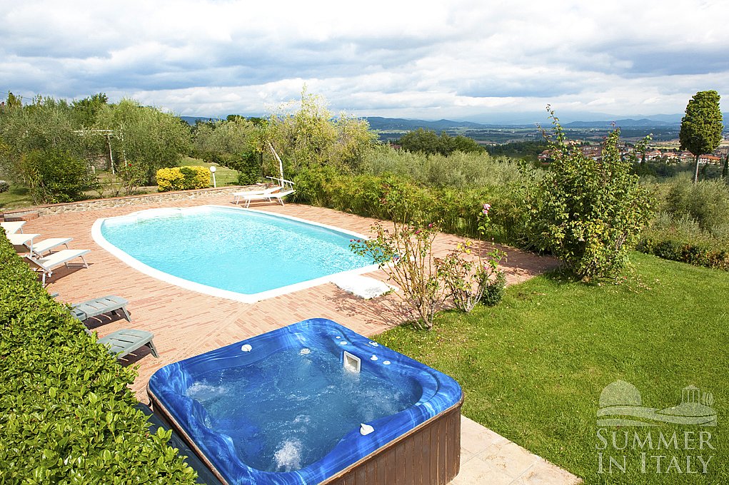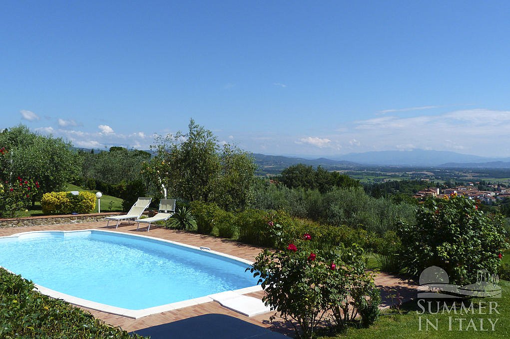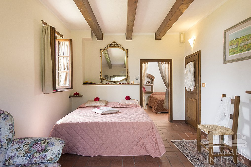 Villa Belinda is a romantic and welcoming two-story villa surrounded by meadows and by green hills. It sleeps nine people. From Villa Belinda you will enjoy an enchanting view of the Tuscan hills. Villa Belinda is 200 square meters (2150 square feet). It features a shared swimming pool, a private garden and winter heating.