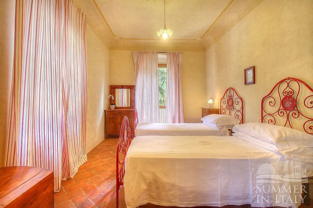 You will be able to enter the second bedroom from the corridor. It has two twin beds (80 cm/32 inches), that can be pushed together into a matrimonial bed if requested (please contact our staff in advance to make arrangements). The room has a window overlooking the gardens of the surrounding houses.