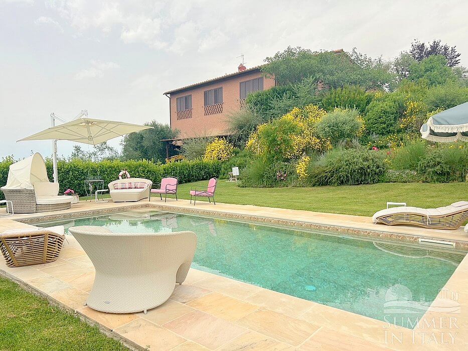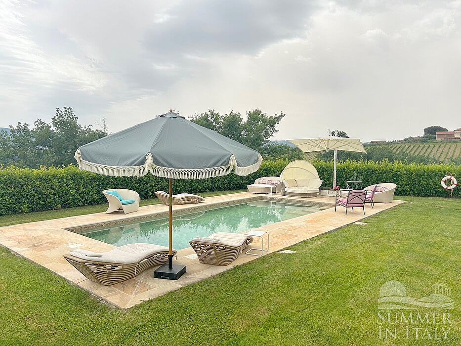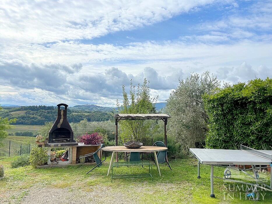 Villa Bruma Piccola is a welcoming two-story apartment that is part of a villa surrounded by meadows and by green hills. It sleeps nine people. From Villa Bruma Piccola you will enjoy a spellbinding view of the greenery and of San Gimignano at a distance. Villa Bruma Piccola is 450 square meters (4850 square feet). It features a private swimming pool, a private terrace, a private patio, a private garden, air conditioning (please read description below to check in which rooms the units are installed), winter heating and WI-FI Internet access.