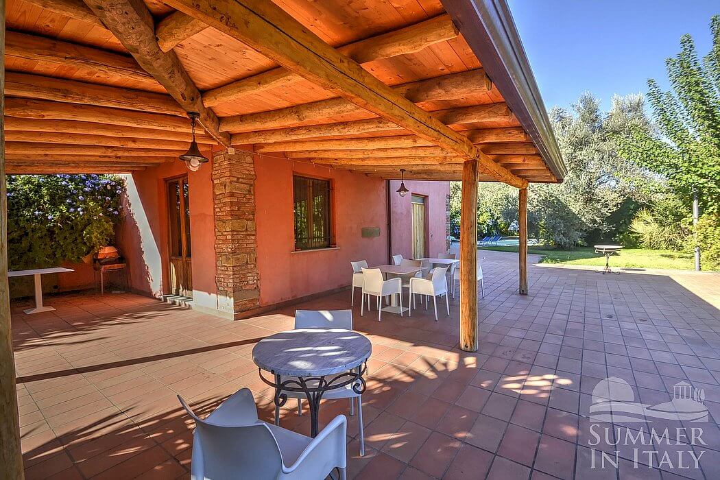The swimming pool is 10 meters (33 feet) large by 5 meters (16 feet) long. The area is equipped with tables, chairs, sun umbrellas, sun loungers and an external shower. From the swimming pool you will enjoy a broad view of the garden. You will share the pool with the other guests staying at the complex. The swimming pool is open from the beginning of May until the end of October.