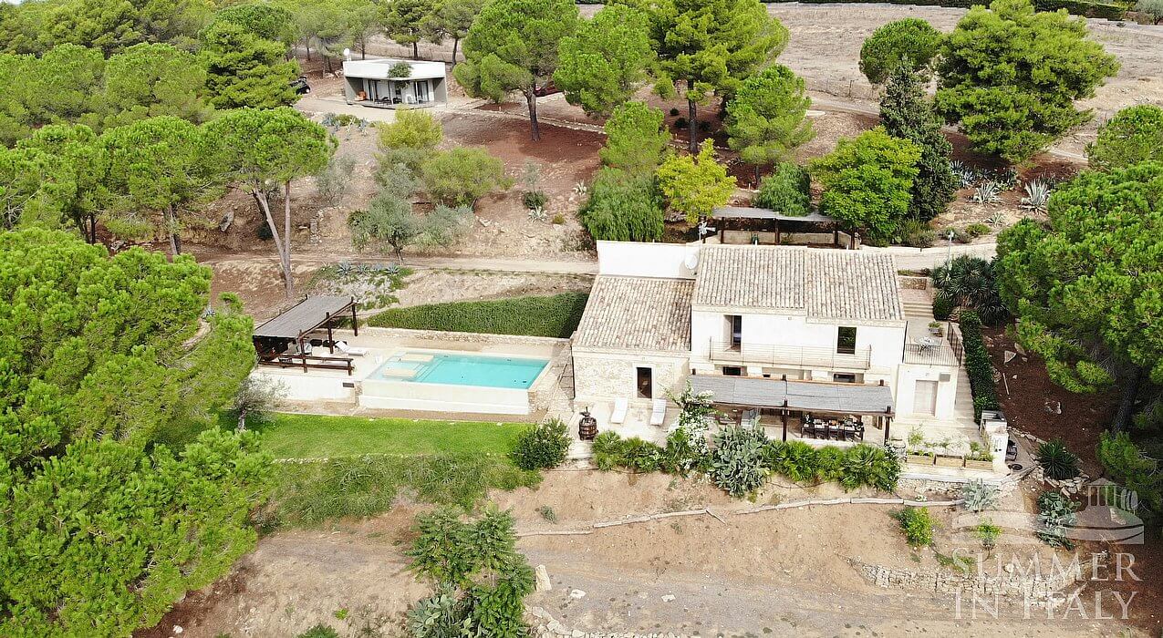 Set in a 24 acres park featuring olives and fruits trees, Villa Caltagira is made up two separate buildings. The main villa (which features two bedrooms and three bathrooms) and an annex, located 100 metres away (where you will find three more bedrooms and three bathrooms).
