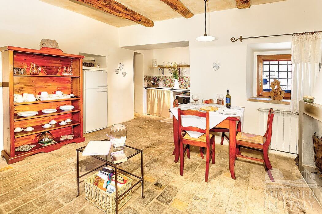 Villa Cenobio E is a characteristic and welcoming apartment that is part of an ancient country house made of stone. It sleeps four people. From Villa Cenobio E you will enjoy an enchanting view of the Umbrian hills, of the forest and of the greenery. Villa Cenobio E is 35 square meters (375 square feet). It features a shared swimming pool and a shared jacuzzi pool, two shared patios, a shared garden, winter heating and WI-FI Internet access.