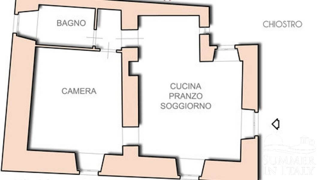 Villa Cenobio E is located on the ground floor of an ancient convent. You will reach it from the parking area going up approximately four stairway steps.