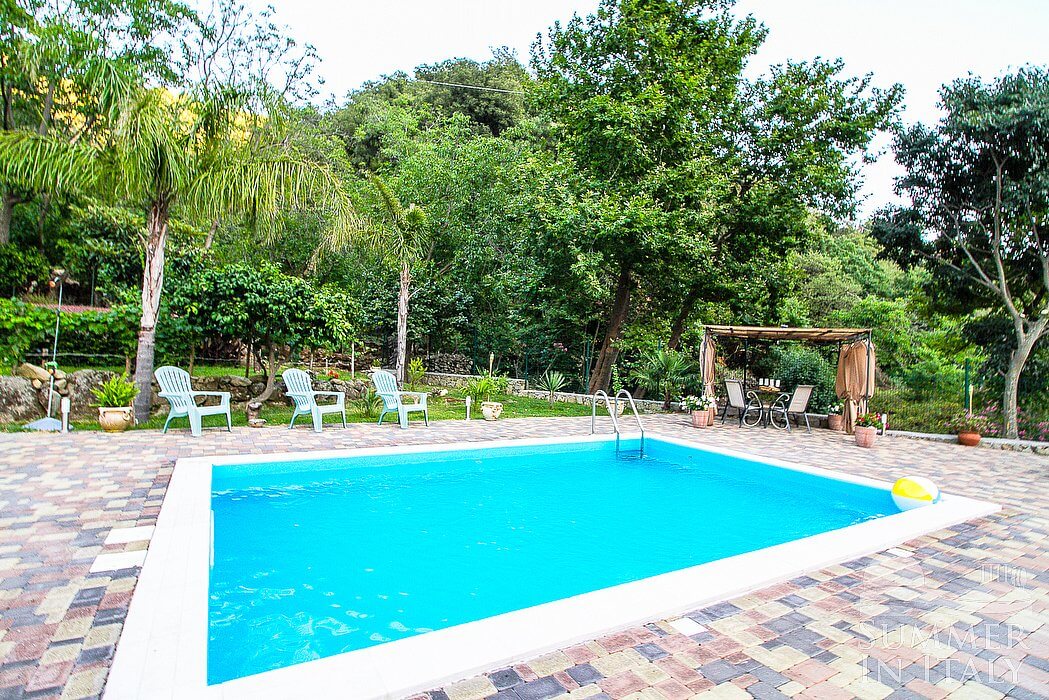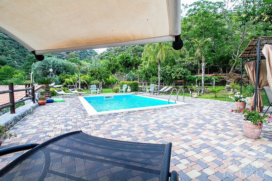 Villa Circe is a characteristic and welcoming cottage situated at a short distance from the suggestive Alcantara Gorges. It sleeps six people. From Villa Circe you will enjoy a spellbinding view of the valley and of the greenery. Villa Circe is 110 square meters (1200 square feet). It features a private swimming pool, a private patio, a private garden, air conditioning (please read description below to check in which rooms the units are installed), winter heating and WI-FI Internet access.
