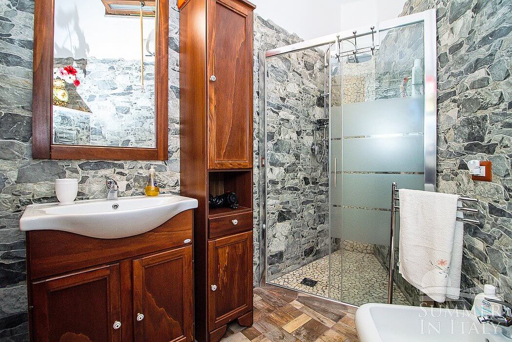 You will be roughly 4 km (2.5 miles) from the center of Motta Camastra, where you will find restaurants and shops. You will find a grocery store at 1.5 km (roughly 1 mile) and the closest beach (Giardini Naxos Beach) at 14 km (roughly 8.7 miles). You will reach Villa Circe from the parking area going down approximately eight stairway steps.