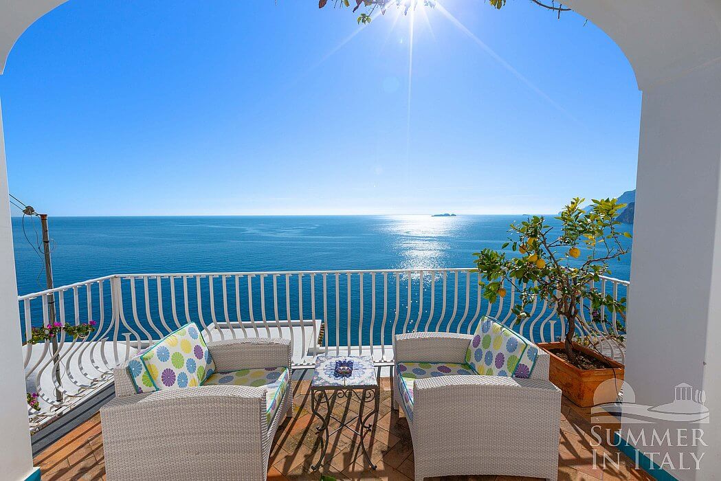 The second terrace is 25 square meters (270 square feet) large. It is partly shaded by a roof. It is equipped with a table and chairs. From the terrace you will enjoy a charming view of the sea and of the coast from Positano to Punta Campanella, the western tip of the Sorrentine peninsula, and of the island of Capri on the horizon.