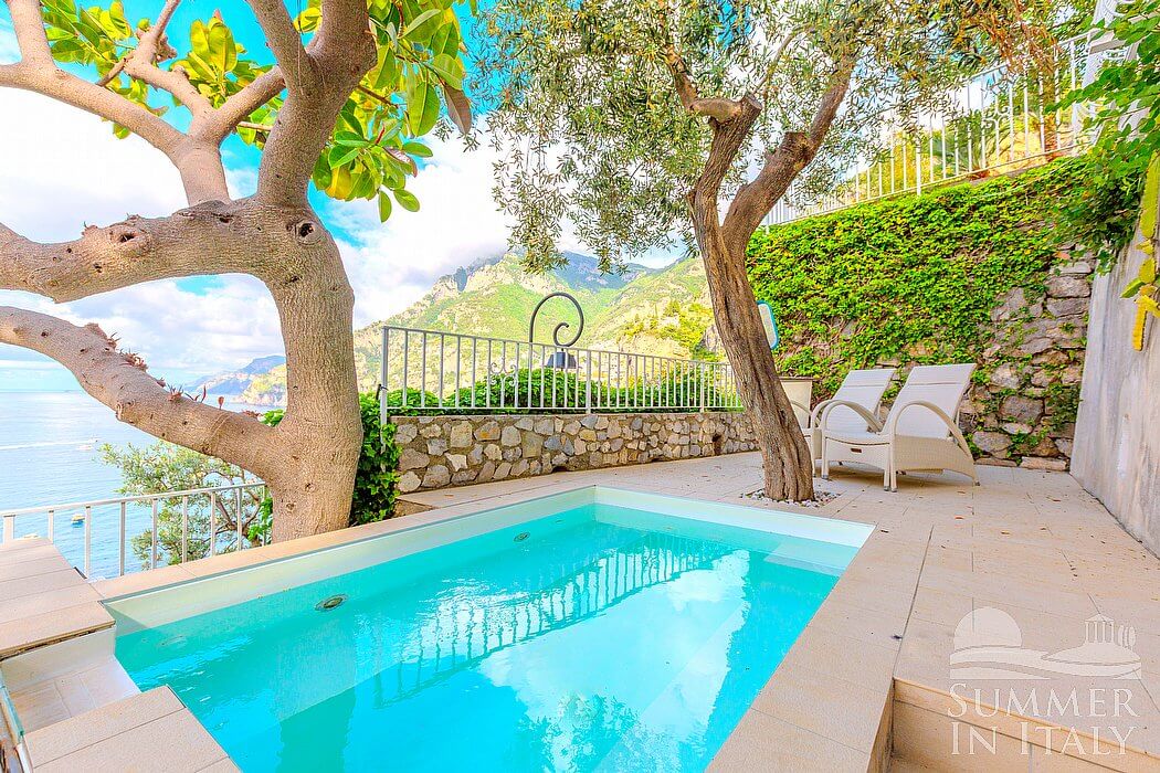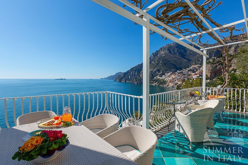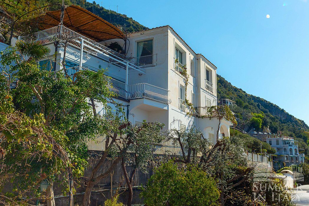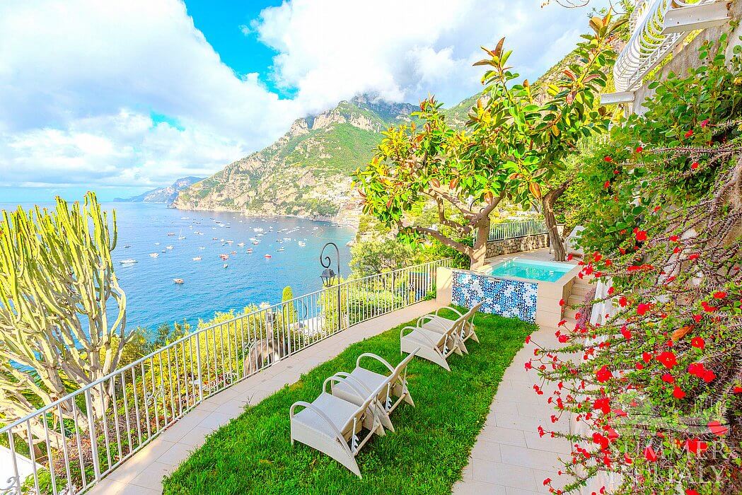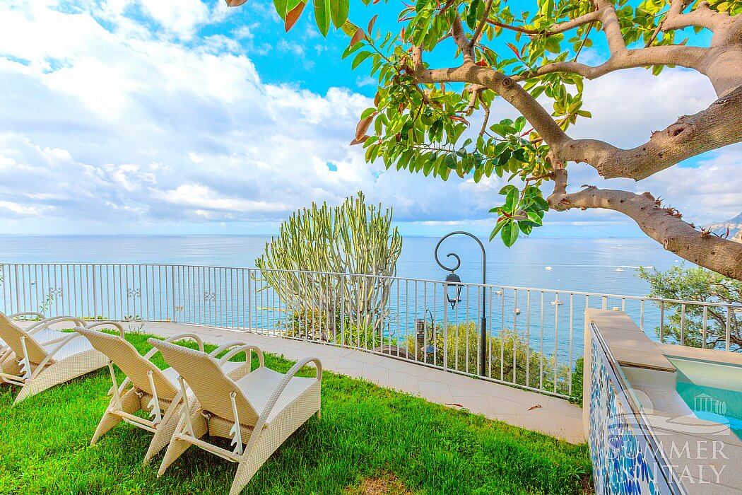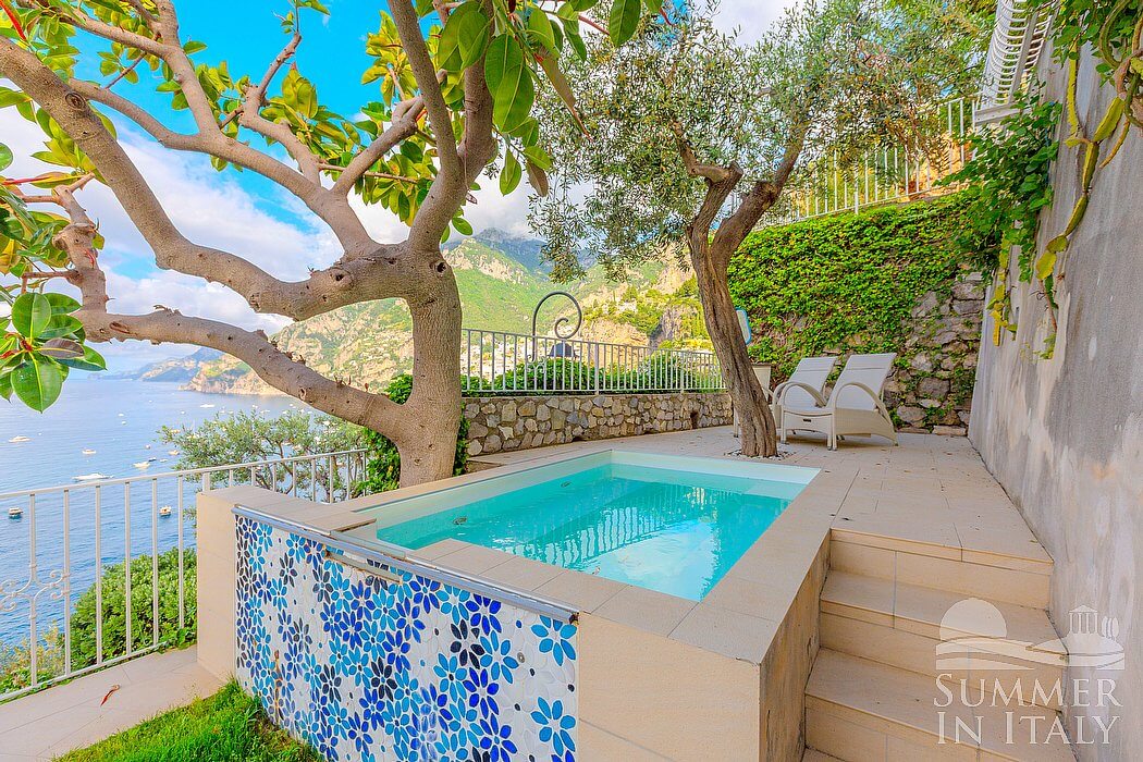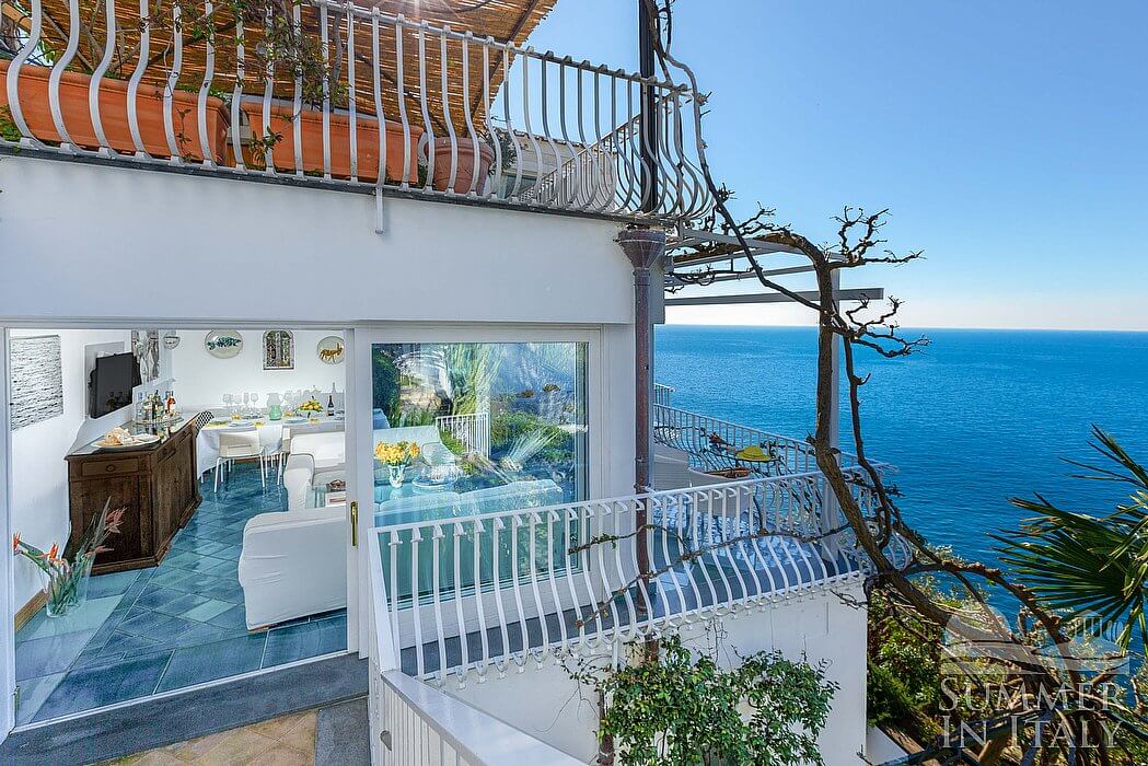 Villa Cleopatra is an elegant and welcoming two-story villa built sheer above the sea. It sleeps ten people. From Villa Cleopatra you will enjoy a charming view of the sea and of the coast from Positano to Punta Campanella, the western tip of the Sorrentine peninsula, and of the island of Capri on the horizon. Villa Cleopatra is 500 square meters (5380 square feet). It features a private jacuzzi pool, direct access to the beach and to the sea, two nice private terraces with a view of the sea, a private garden, air conditioning (please read description below to check in which rooms the units are installed), winter heating and WI-FI Internet access.