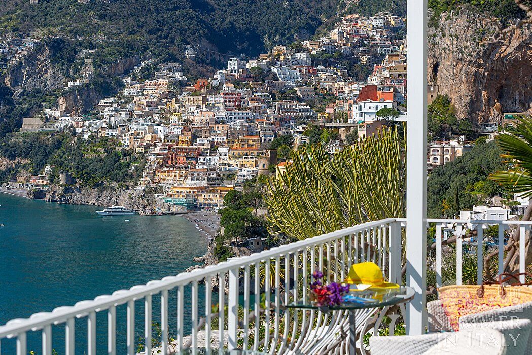 You will be roughly 1 km (0.6 miles) from the center of Positano, a few steps from the stop for the SITA bus and for the local bus and the beach. You will find a number of restaurants at 1 km (roughly 1100 yards) and shops at 1.5 km (roughly 1 mile).