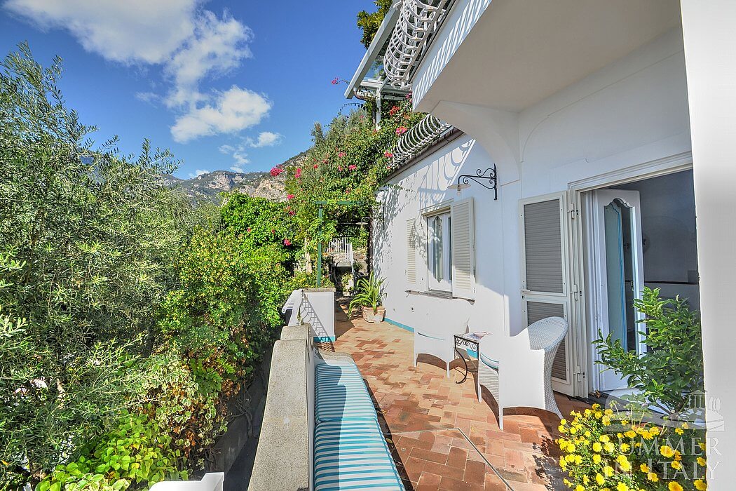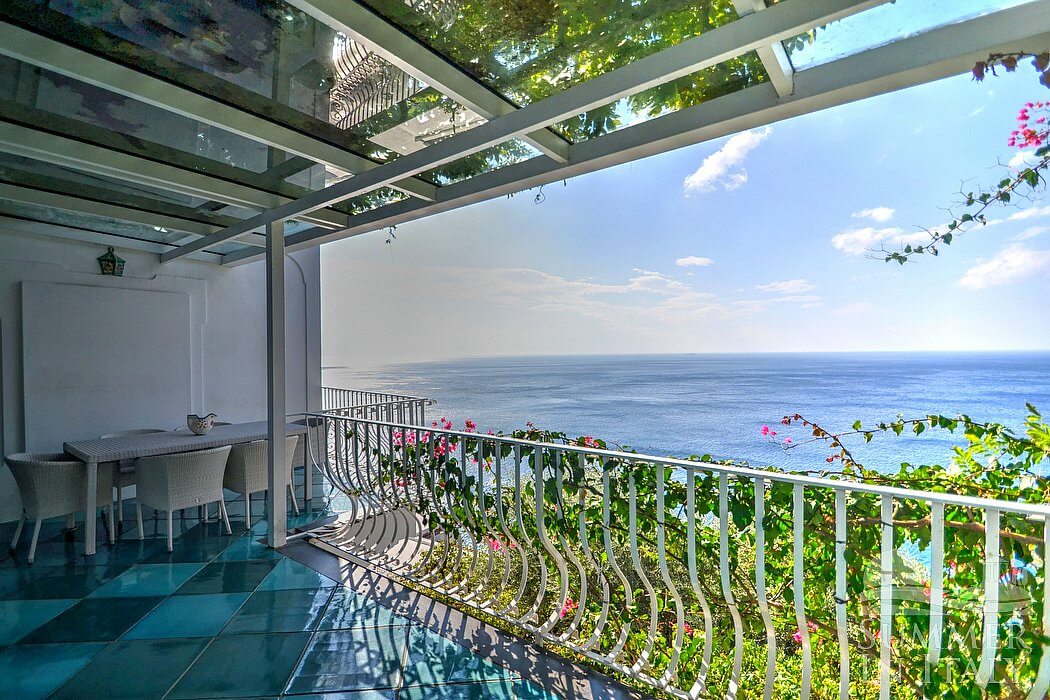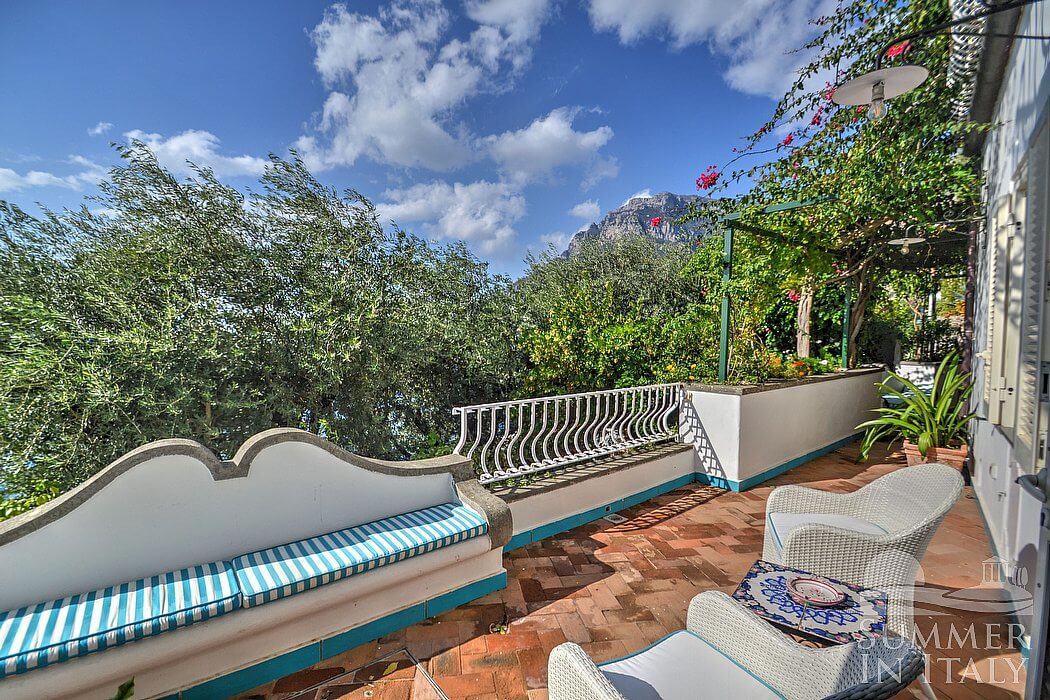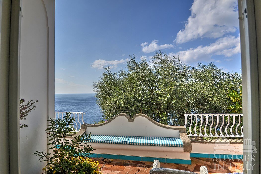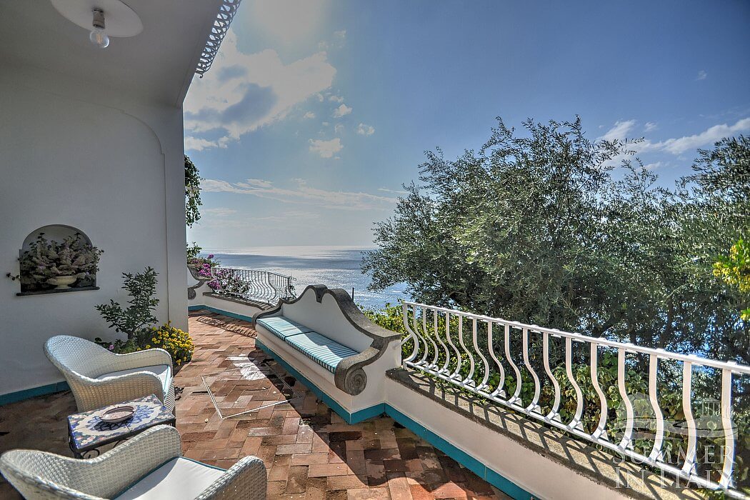 The first terrace is 25 square meters (270 square feet) large. It is partly shaded by a roof. It is equipped with a table and chairs. From the terrace you will enjoy a charming view of the sea and of the coast from Positano to Punta Campanella, the western tip of the Sorrentine peninsula, and of the island of Capri on the horizon.
