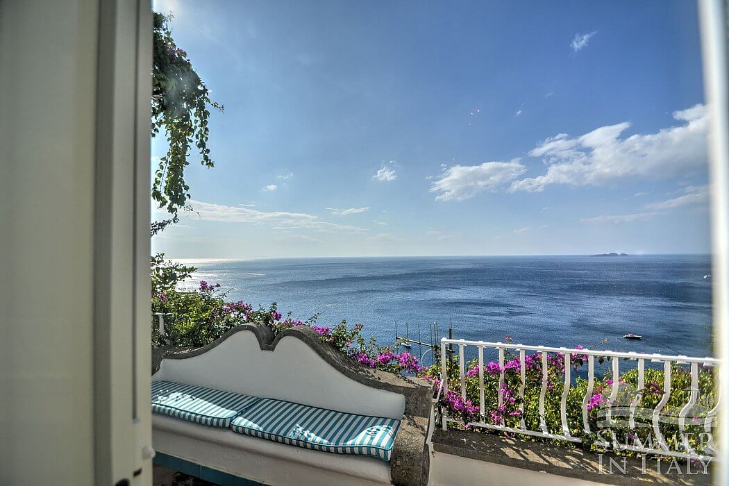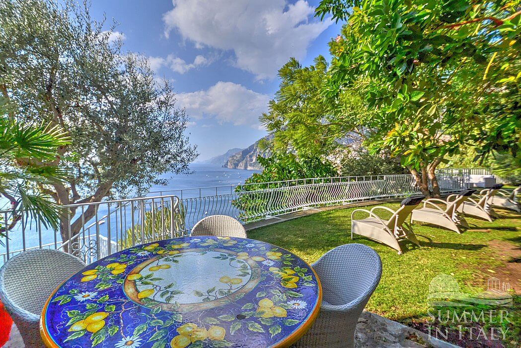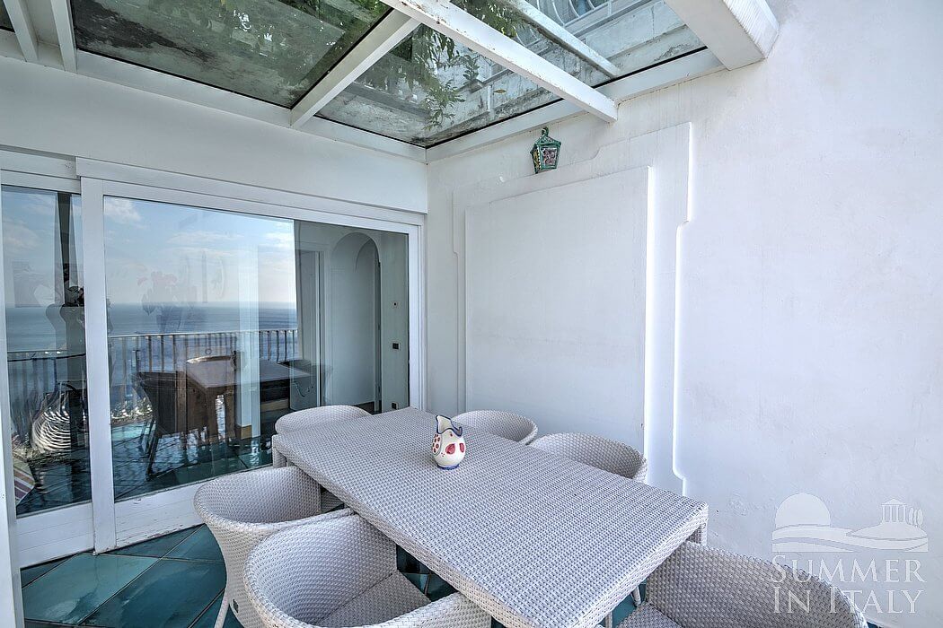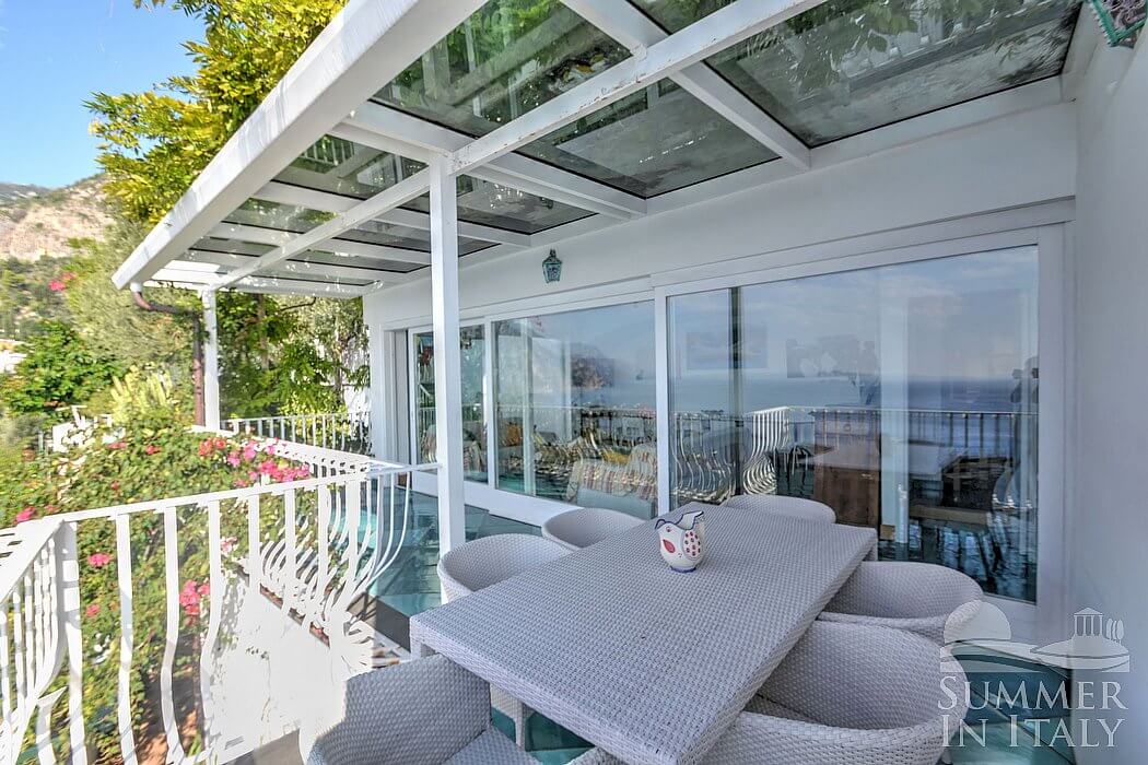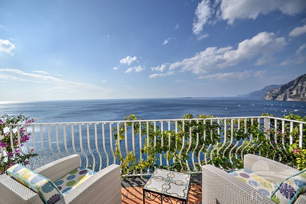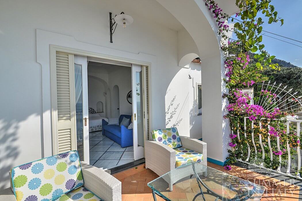 The first terrace is 25 square meters (270 square feet) large. It is partly shaded by a roof. It is equipped with a table and chairs. From the terrace you will enjoy a charming view of the sea and of the coast from Positano to Punta Campanella, the western tip of the Sorrentine peninsula, and of the island of Capri on the horizon.