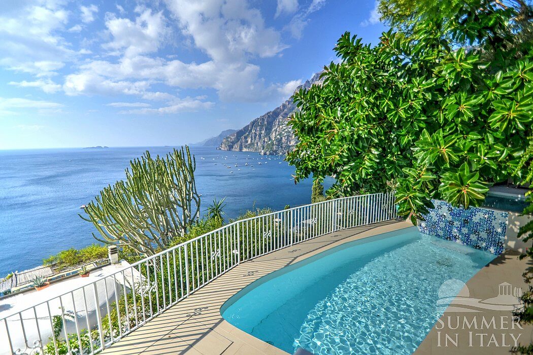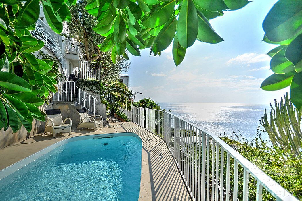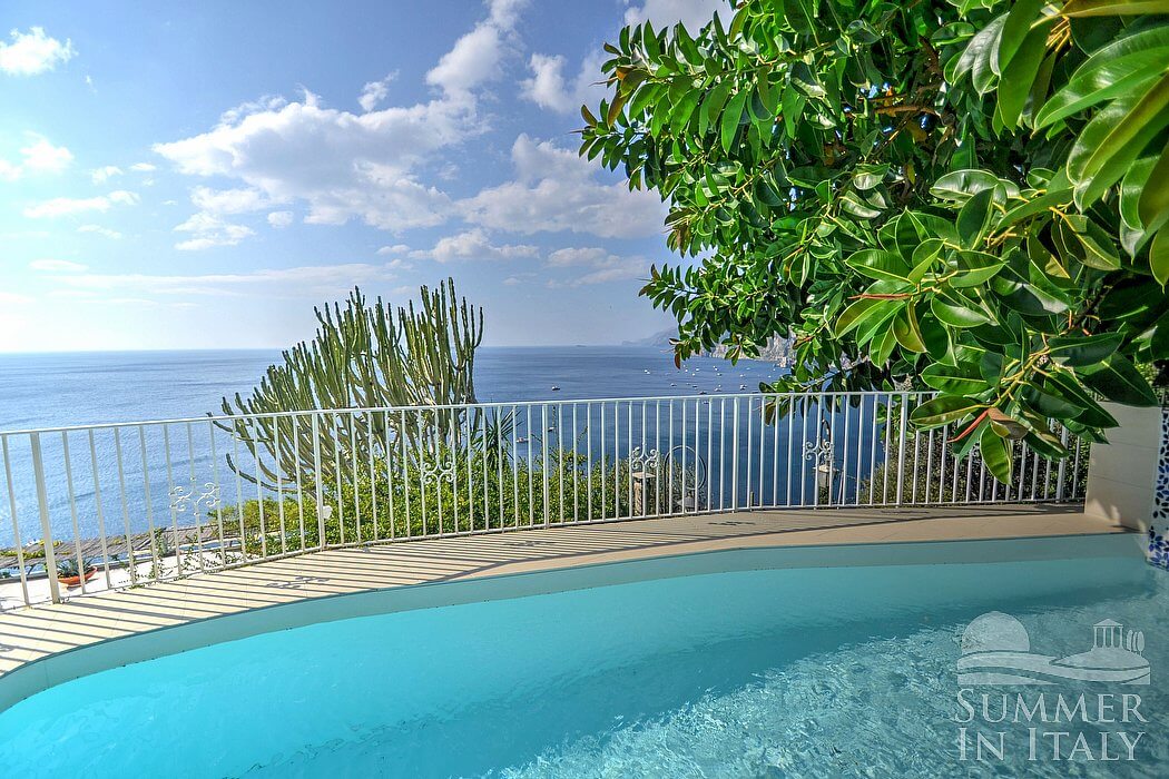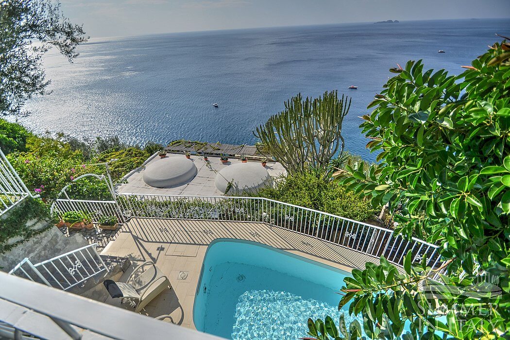 Villa Cleopatra Grande is an elegant and welcoming two-story villa built sheer above the sea. It sleeps 12 people. From Villa Cleopatra Grande you will enjoy a charming view of the sea and of the coast from Positano to Punta Campanella, the western tip of the Sorrentine peninsula, and of the island of Capri on the horizon. Villa Cleopatra Grande is 500 square meters (5380 square feet). It features a private swimming pool, direct access to the beach and to the sea, a nice private terrace with a view of the sea, a private garden, air conditioning (please read description below to check in which rooms the units are installed), winter heating and WI-FI Internet access.