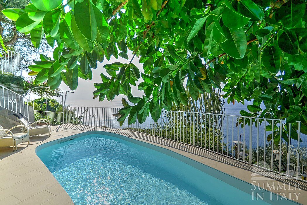The swimming pool is 2.7 meters (8.8 feet) large by 7 meters (23 feet) long, from 1 meter (3.3 feet) to 1.8 meters (6 feet) deep. In the swimming pool area you will also find a non-heated jacuzzi pool with hydromassage (1.8 by 3 meters, 6 by 9.8 feet). It is equipped with a table, chairs, sun loungers and an external shower. From the swimming pool you will enjoy a fascinating view of the sea. The pool is open from the beginning of April until the end of October.