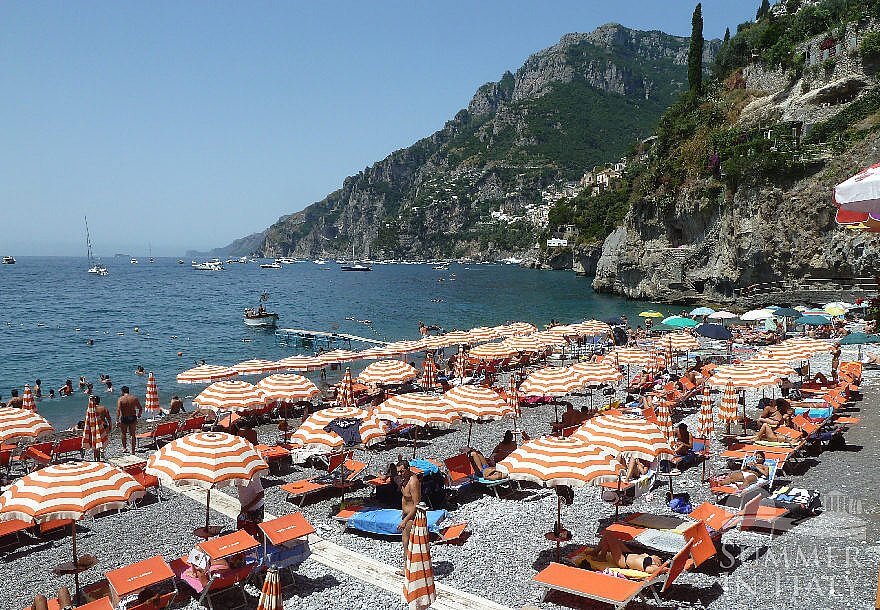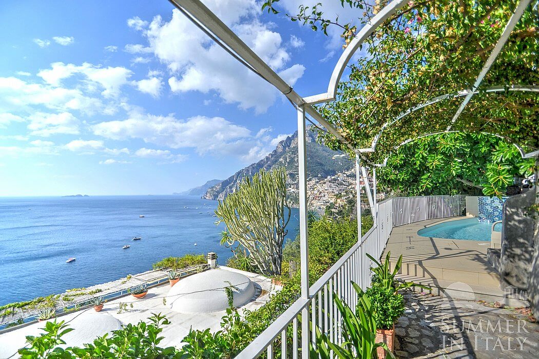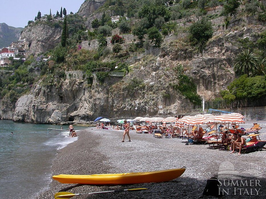 You will be roughly 1 km (0.6 miles) from the center of Positano, a few steps from the stop for the SITA bus and for the local bus and the beach. You will find a number of restaurants at 1 km (roughly 1100 yards) and shops at 1.5 km (roughly 1 mile). You will reach Villa Cleopatra Grande from the street level going down a stairway which consists of approximately 36 steps.