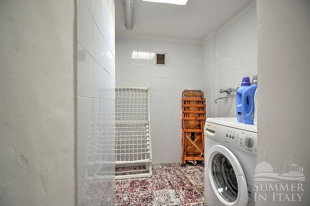 You will be able to enter the fourth bedroom from the corridor. The furnishings are elegant and refined, and include some antique pieces. The room has a matrimonial bed (160 cm/63 inches, wider than a queen-size bed). From the bedroom you will be able to enter the second terrace through a French door. The bedroom is equipped with an air conditioning/heating unit, and you will also find a safe. This bedroom has an en-suite bathroom, tiled with lucid handmade majolica tiles and equipped with a washbasin, a toilet, a large fully-enclosed shower and a hairdryer.