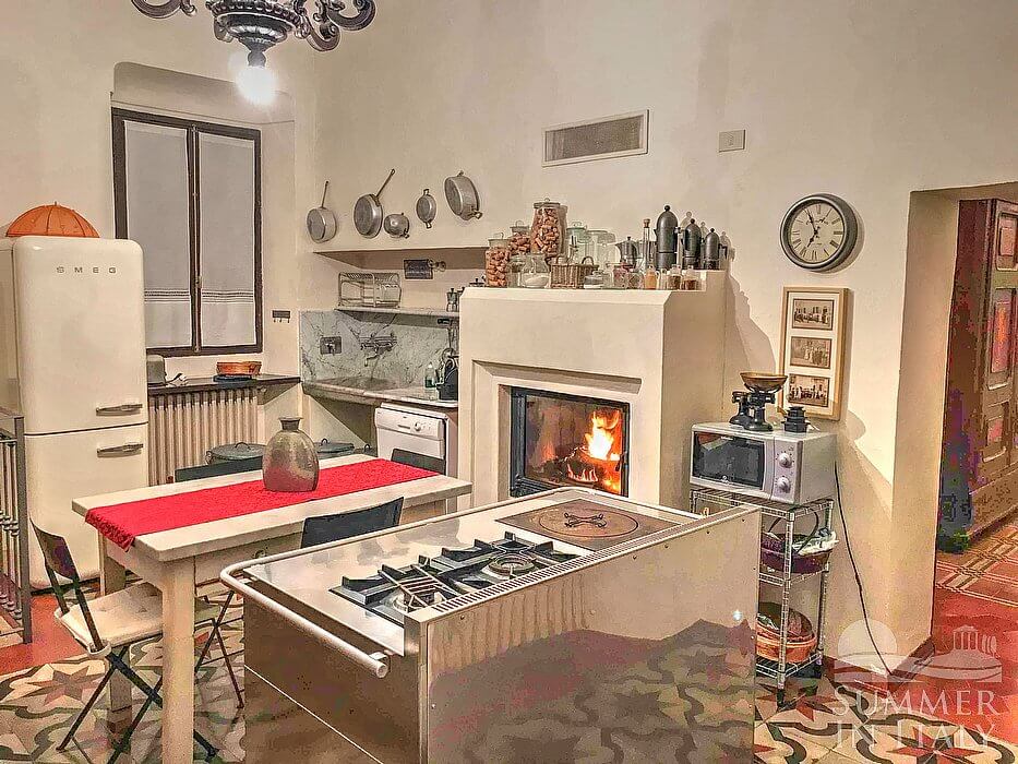 You will be able to enter the kitchen through a corridor. It is very well equipped, with a four-burner gas cooker, an electric oven, a refrigerator with freezer, a dishwasher, a microwave oven, an Italian-style coffee-maker and a kettle. There is a practical fireplace. The dining table can accommodate four guests. The kitchen has a window.