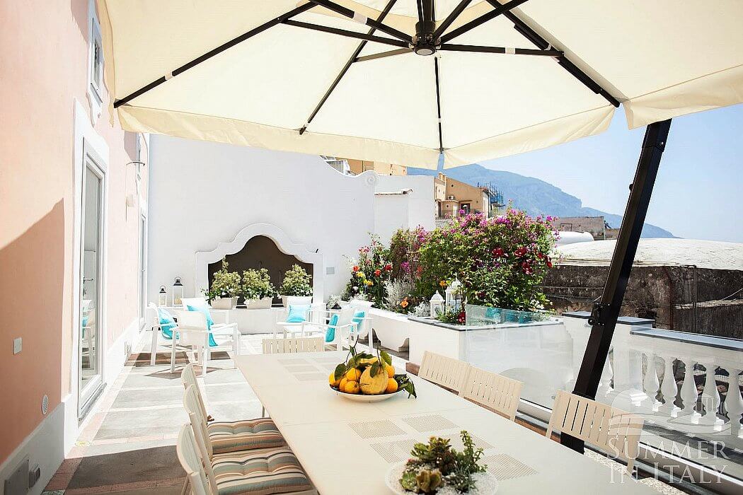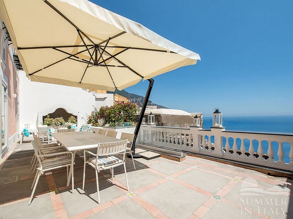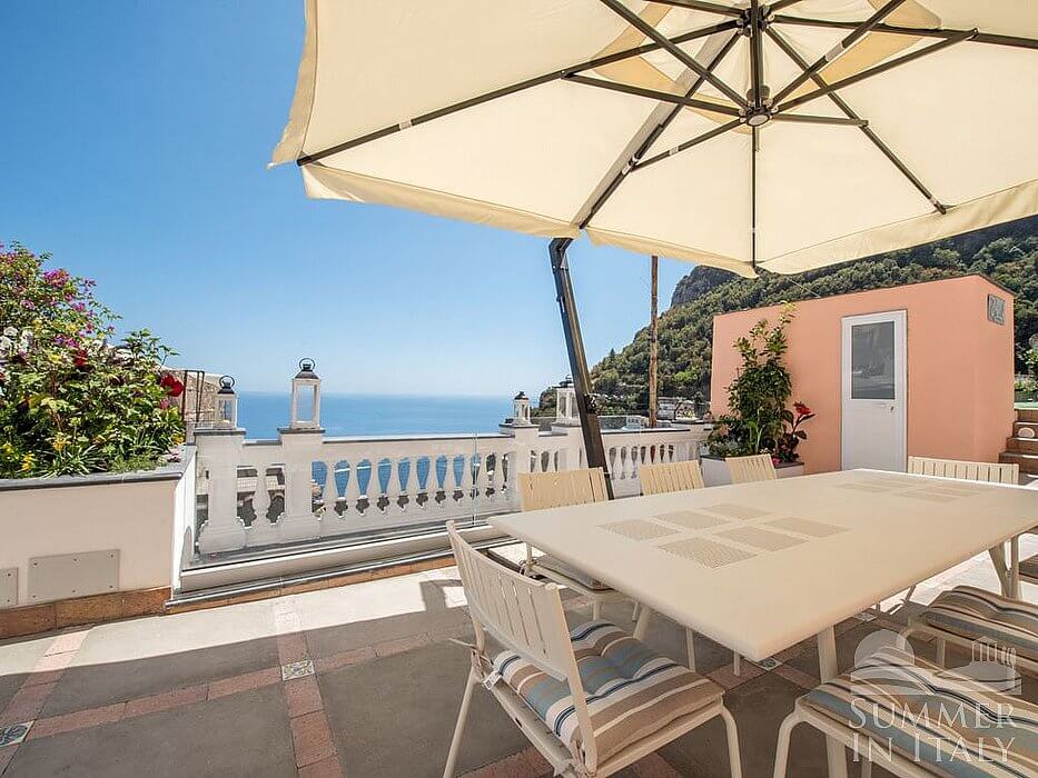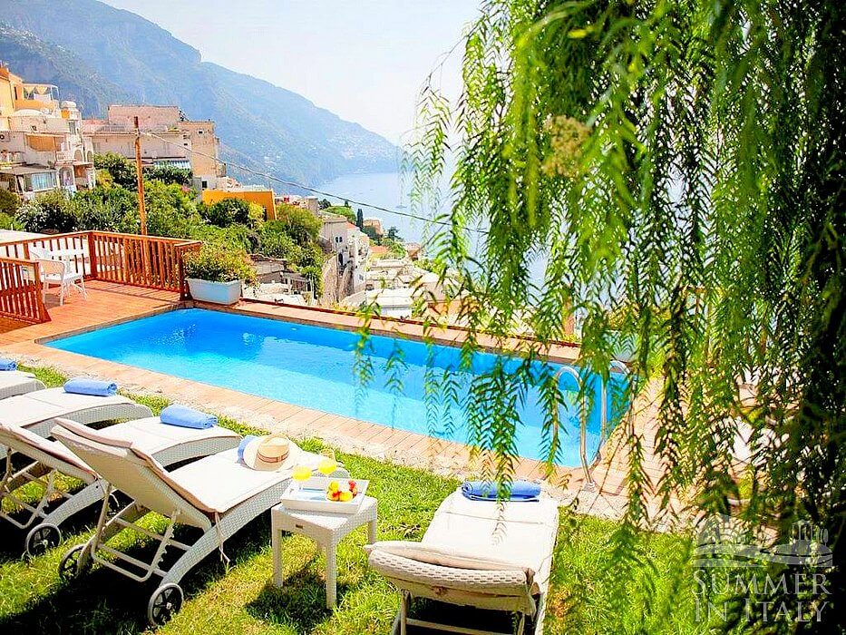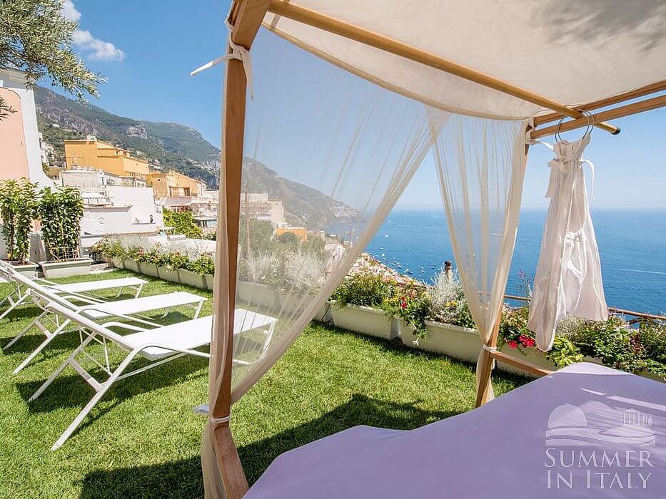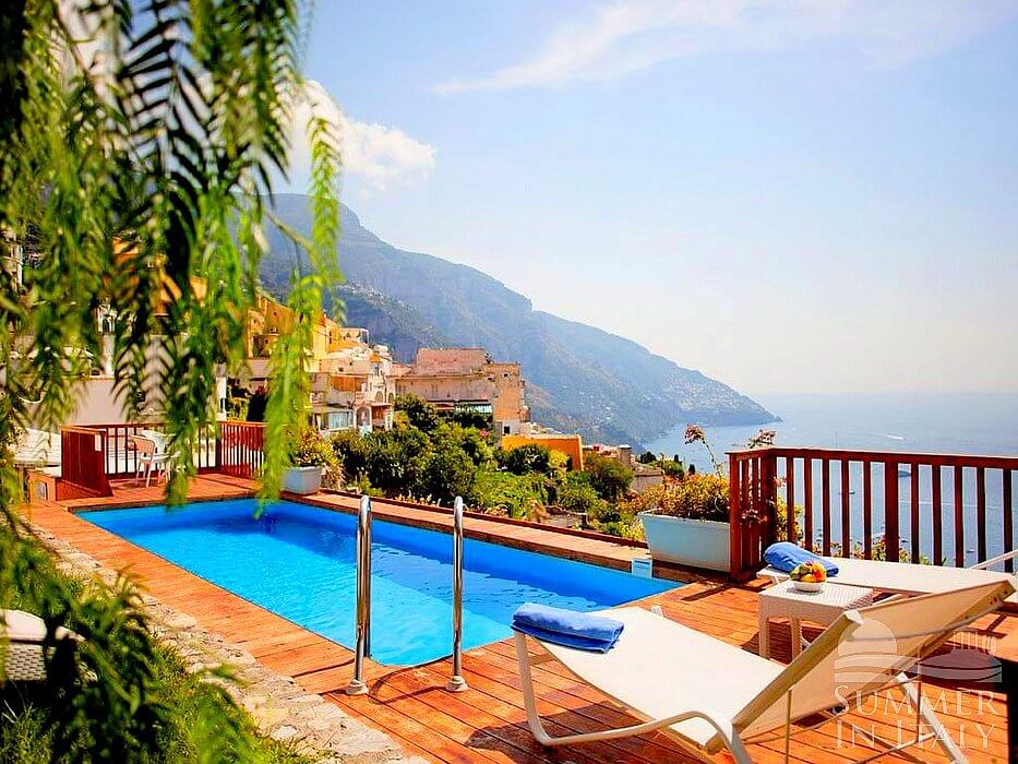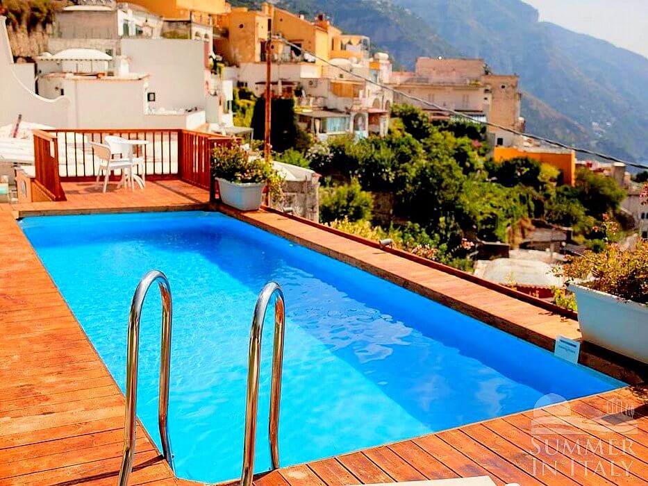 The above-ground swimming pool is 6 meters (20 feet) large by 3 meters (10 feet) long. The area is equipped with a table, chairs and sun loungers. From the swimming pool you will enjoy a fascinating view of the sea, of Positano and of the Amalfi Coast. The pool is open from the beginning of May until the end of October.