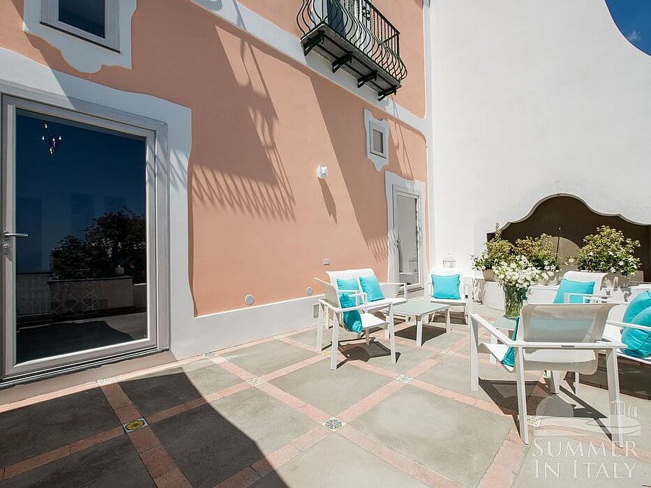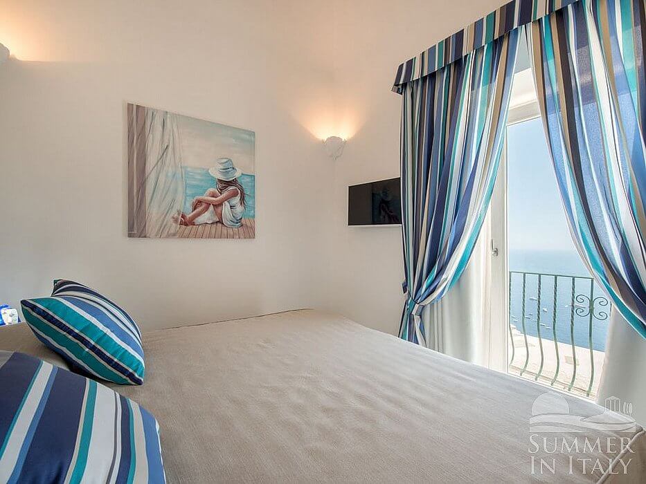 Villa Concordia is a splendid three-story villa which faces the sun and the sea. It sleeps ten people. From Villa Concordia you will enjoy a fascinating view of the sea, of Positano and of the Amalfi Coast. Villa Concordia is 200 square meters (2150 square feet). It features a private swimming pool, a private patio, a private garden, air conditioning (please read description below to check in which rooms the units are installed), winter heating and WI-FI Internet access.