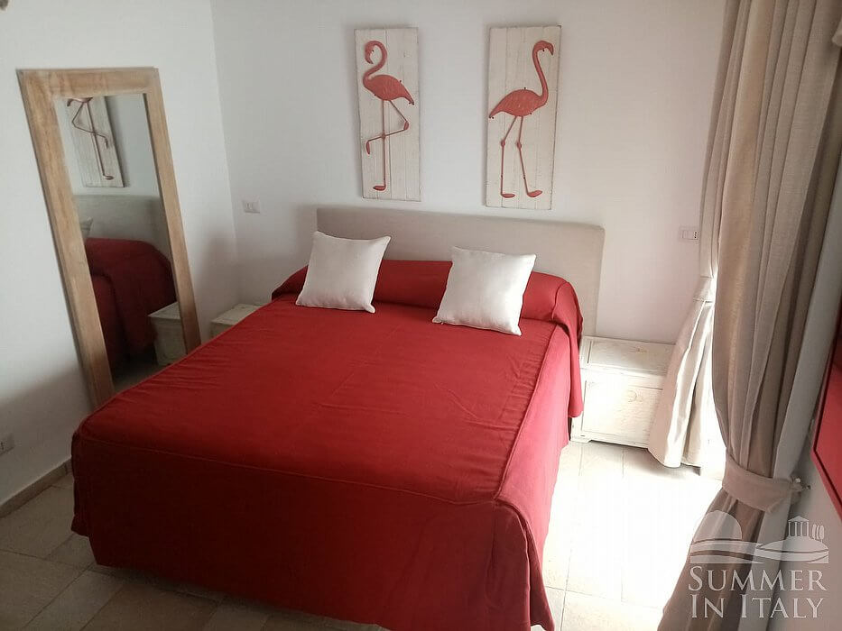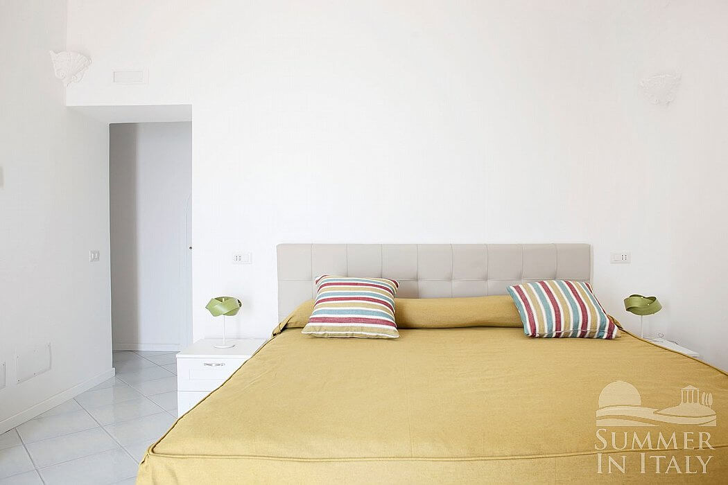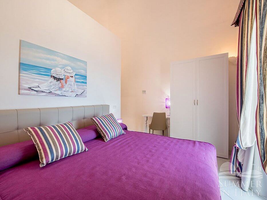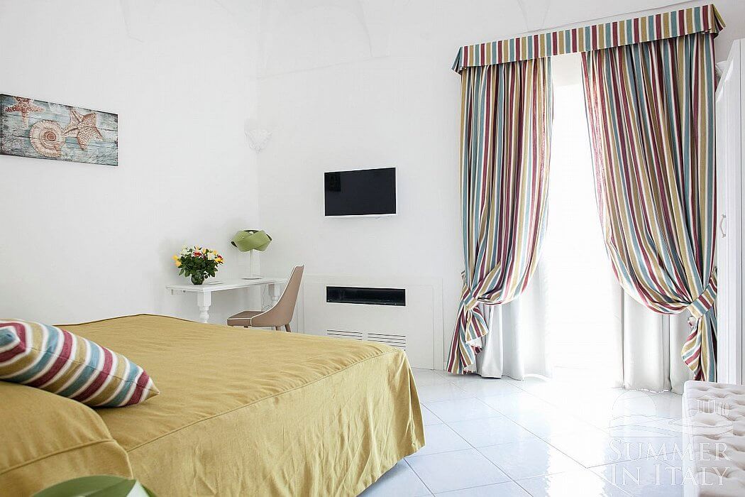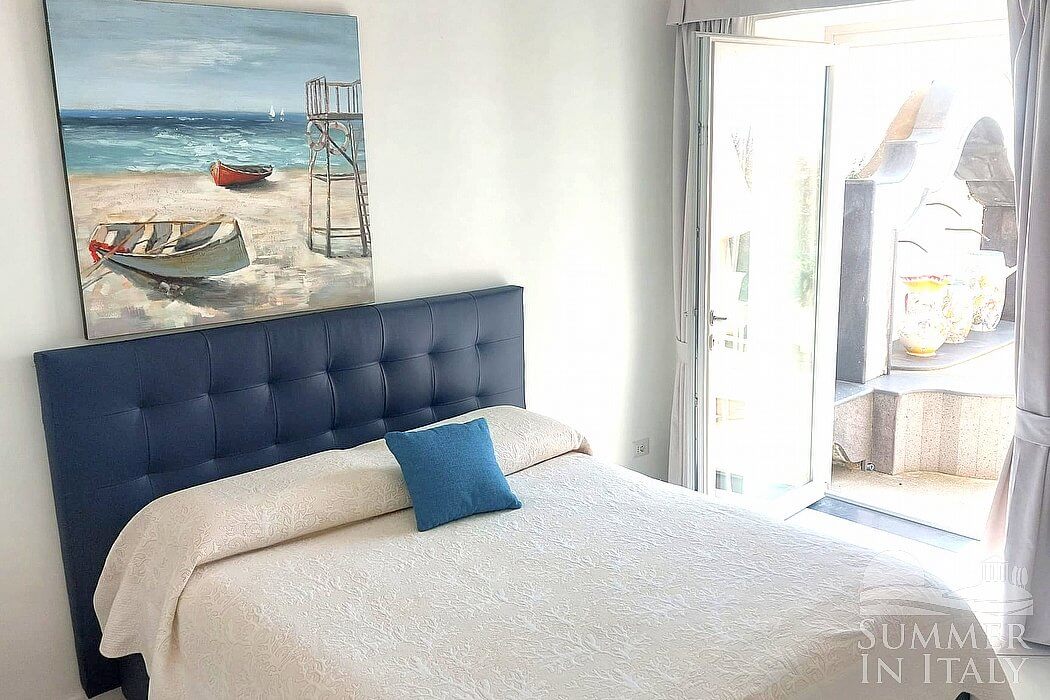 You will be able to enter the fourth bedroom through an external access. The bedroom has a matrimonial bed (160 cm/63 inches, wider than a queen-size bed), that can be split into twins if requested (please contact our staff in advance to make arrangements). The furnishings include a desk. In this room you will find a satellite television (local channels). The room has a Juliet balcony, and it's equipped with an air conditioning/heating unit. This bedroom has an en-suite bathroom, equipped with a washbasin, a toilet, a fully enclosed shower and a hairdryer.