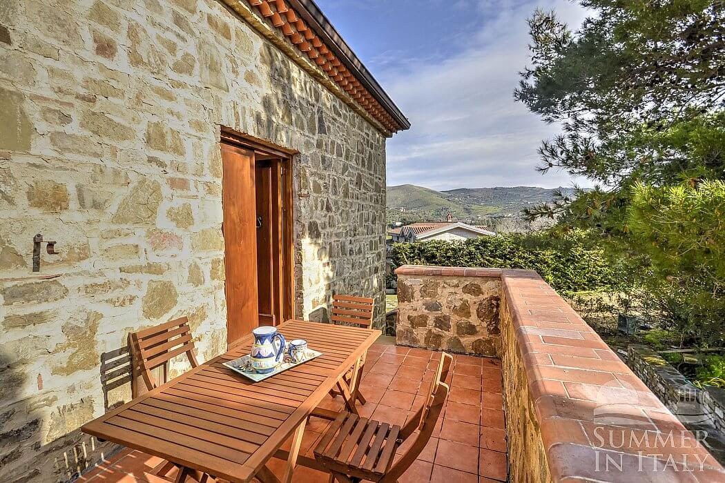 Villa delle Pigne A is located on the top floor of an ancient villa. You will reach it from the garden going up an external stairway which consists of approximately 22 steps.