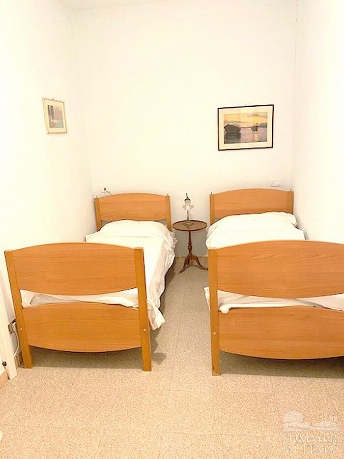 You will be able to enter the second kitchen from the living room. It is equipped with a four-burner electric cooker, an electric oven, a refrigerator with freezer and an Italian-style coffee-maker. The dining table can accommodate four guests. The kitchen has a window, and is equipped with an air conditioning/heating unit.