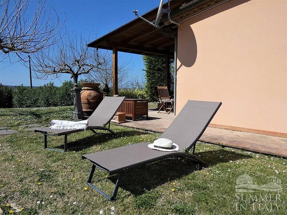 Villa Dolcevino is a characteristic and welcoming one-story villa surrounded by the greenery. It sleeps four people. From Villa Dolcevino you will enjoy a lovely view of the greenery and of the hills. Villa Dolcevino is 80 square meters (860 square feet). It features a private swimming pool, a private patio, a private garden, air conditioning (please read description below to check in which rooms the units are installed), winter heating and WI-FI Internet access.