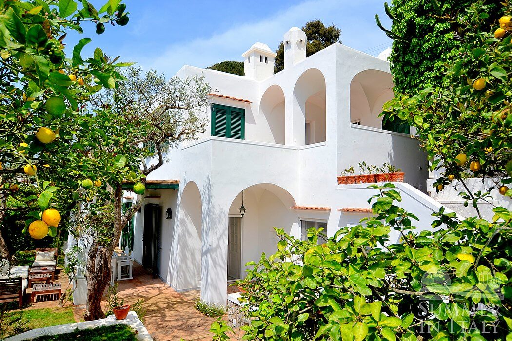 You will be in a pedestrian precinct, approximately 700 meters (770 yards) from the center of Capri, where you will find restaurants and shops. You will find the largest beach of Capri (Marina Grande) at 1.5 km (roughly 1 mile). You will reach Villa Domitilla from the street level along a route that includes approximately 45 stairway steps.