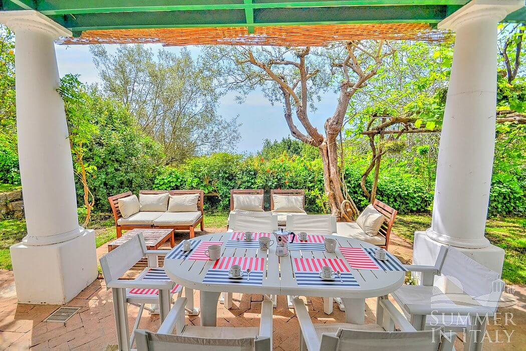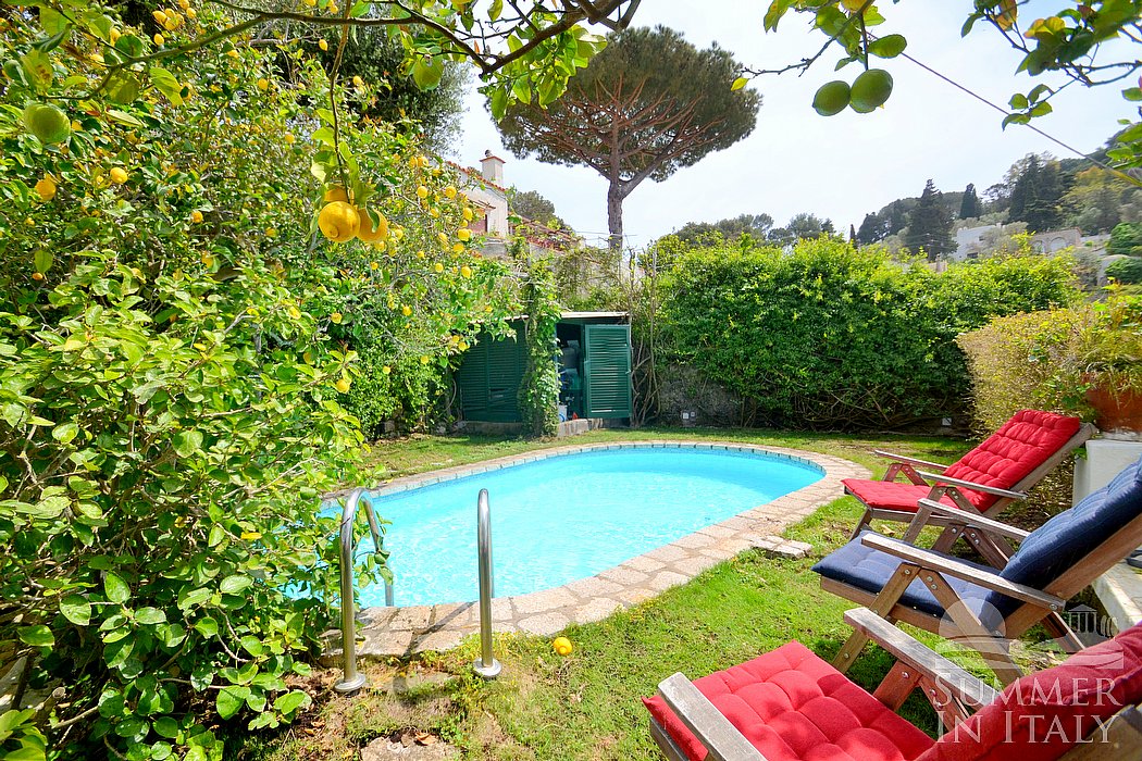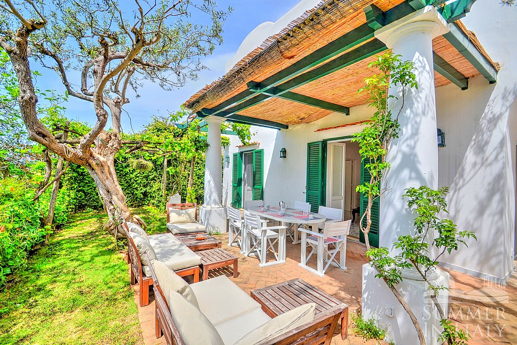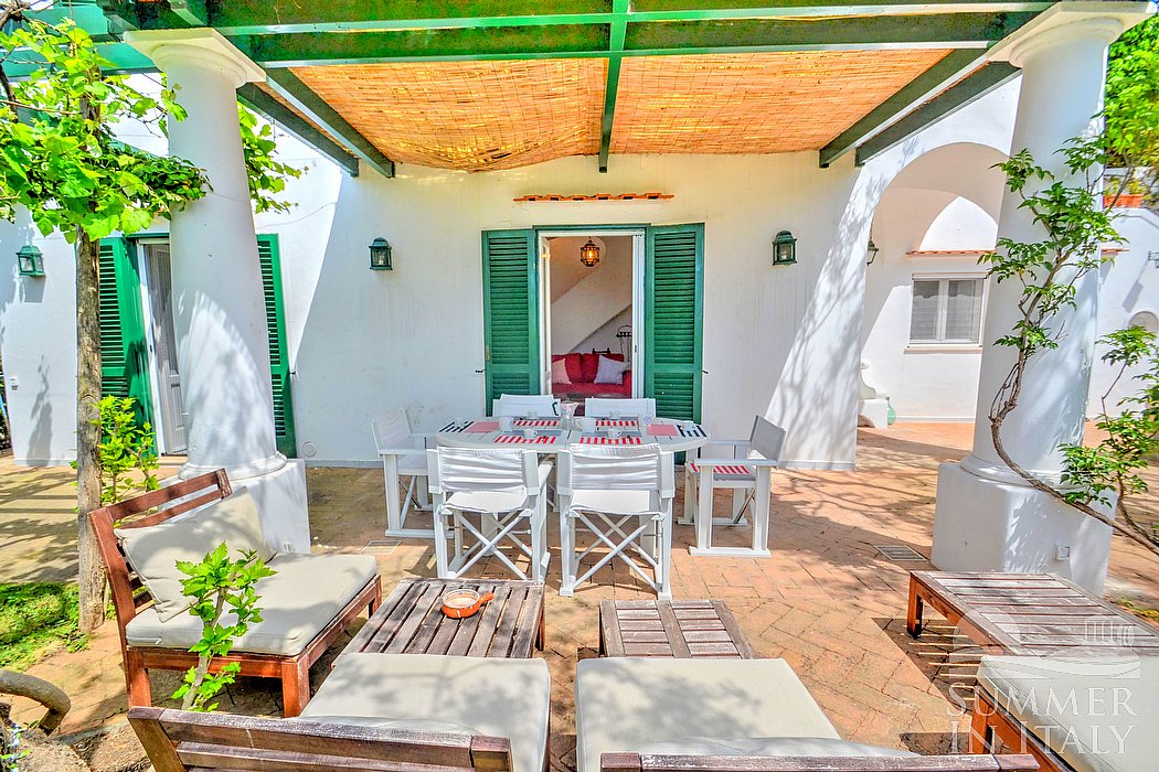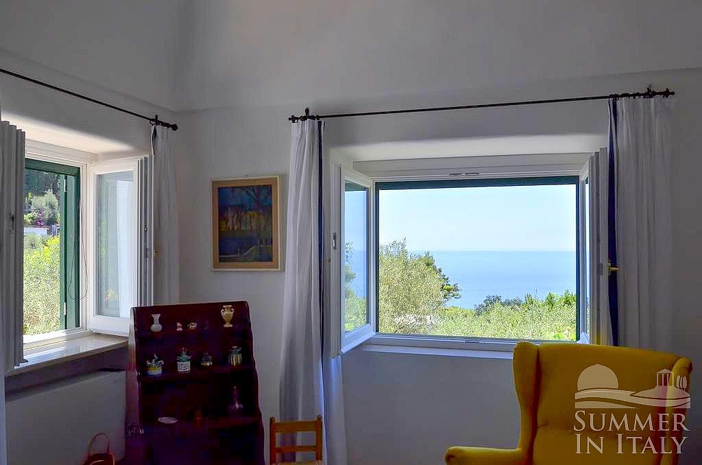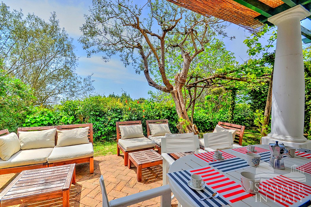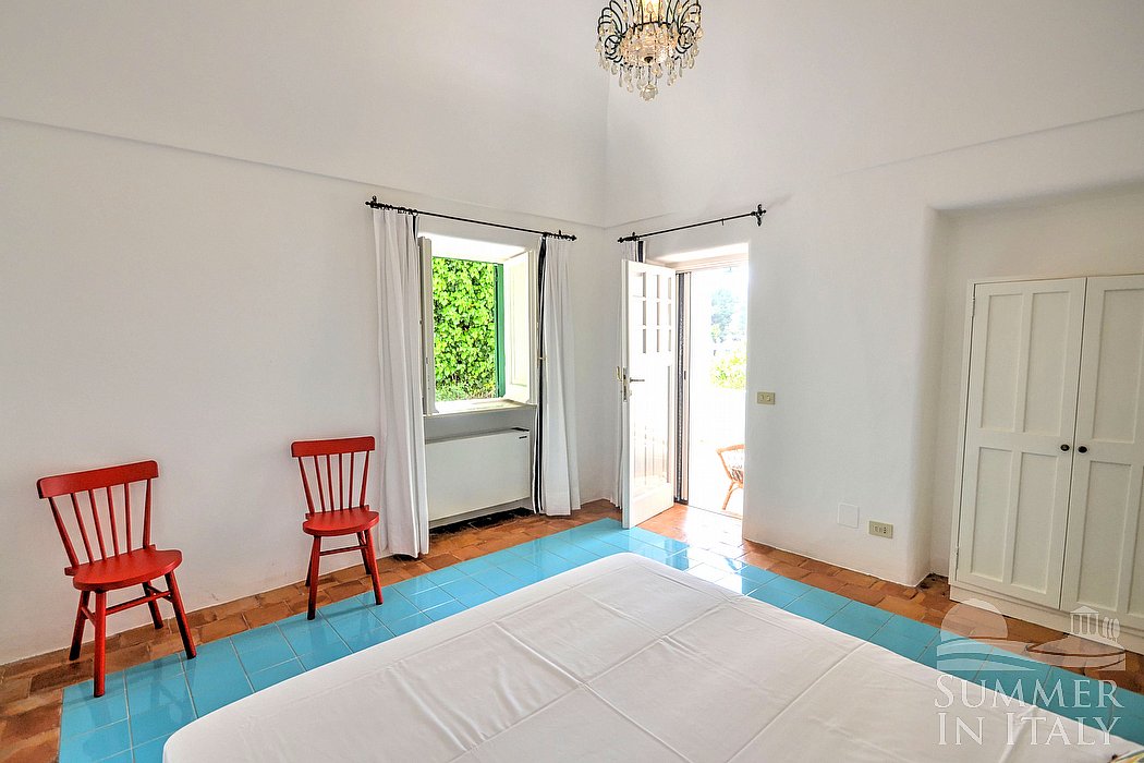 Villa Domitilla is a bright and elegant two-story villa with the fascination of the typical and ancient mediterranean houses. It sleeps 13 people. From Villa Domitilla you will enjoy a charming view of the sea and of the greenery. Villa Domitilla is 200 square meters (2150 square feet). It features a private swimming pool, a private patio, air conditioning (please read description below to check in which rooms the units are installed), winter heating and WI-FI Internet access.