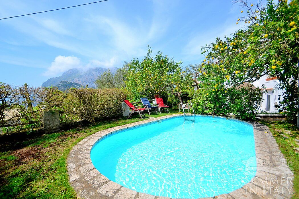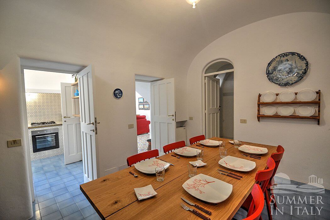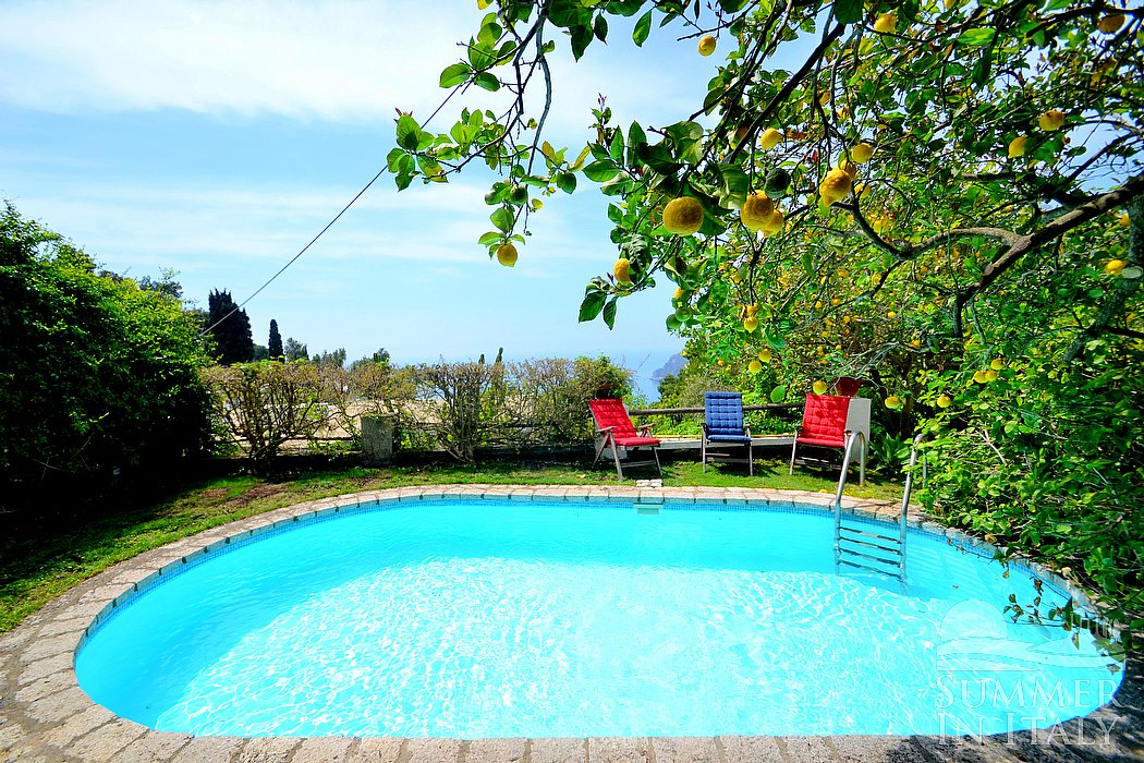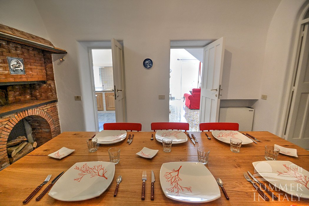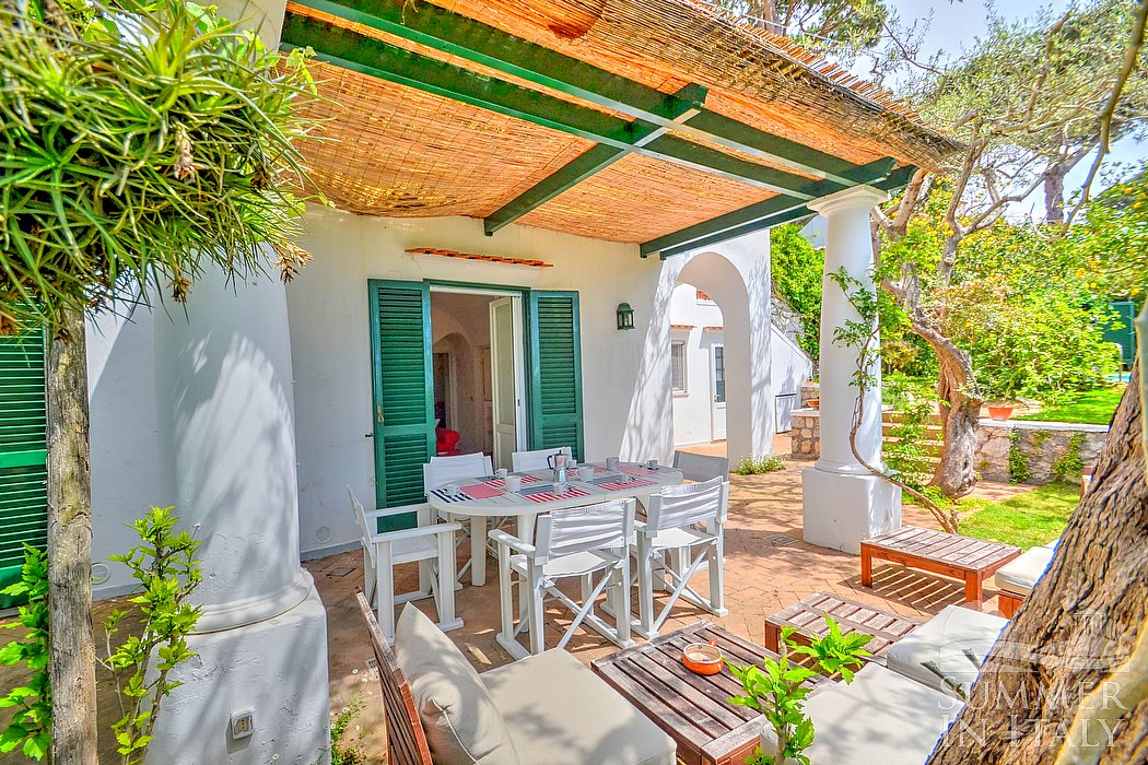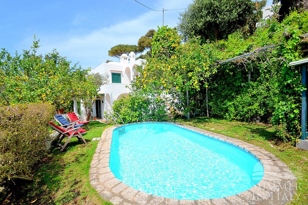 Villa Domitilla is a bright and elegant two-story villa with the fascination of the typical and ancient mediterranean houses. It sleeps 13 people. From Villa Domitilla you will enjoy a charming view of the sea and of the greenery. Villa Domitilla is 200 square meters (2150 square feet). It features a private swimming pool, a private patio, air conditioning (please read description below to check in which rooms the units are installed), winter heating and WI-FI Internet access.