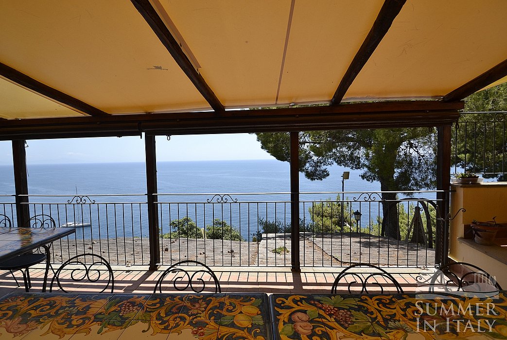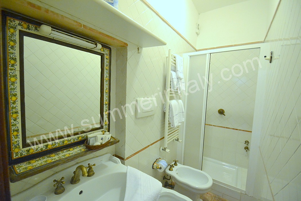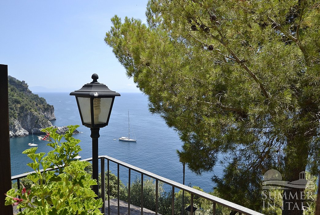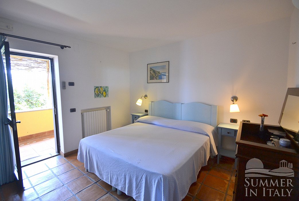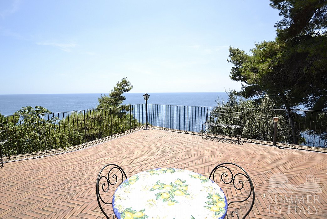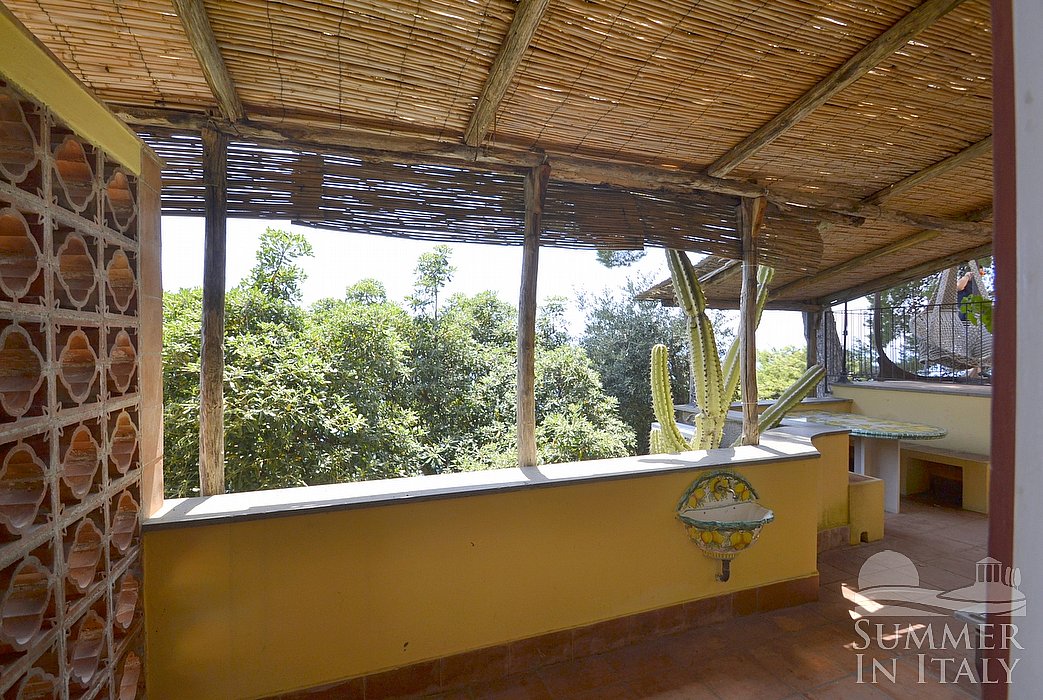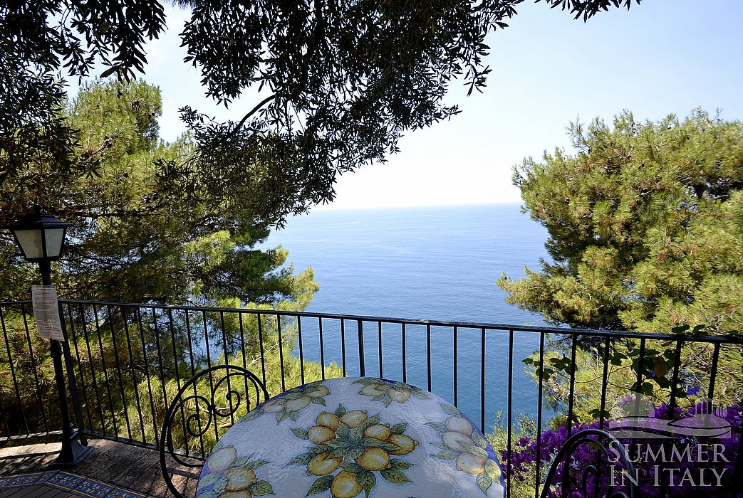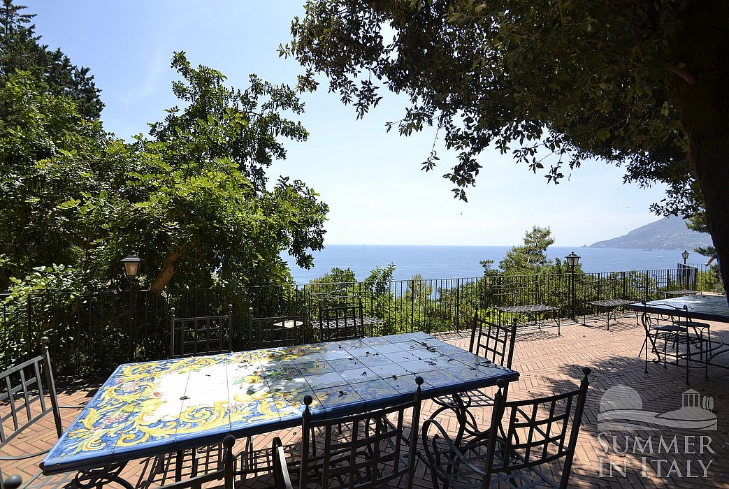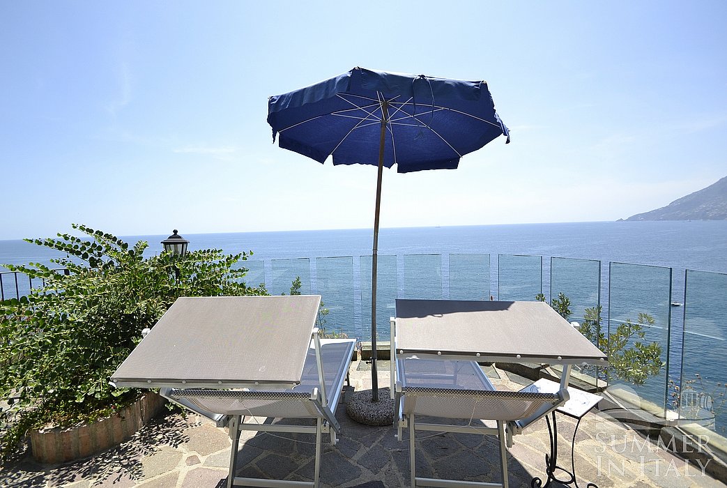 The second terrace is 20 square meters (215 square feet) large. You will reach it from the living room going up an external stairway which consists of approximately 30 steps. It is partly shaded by a pergola with a bamboo roof. It is equipped with two sun loungers. From the terrace you will enjoy a breathtaking view of the sea and of the coast of Amalfi.