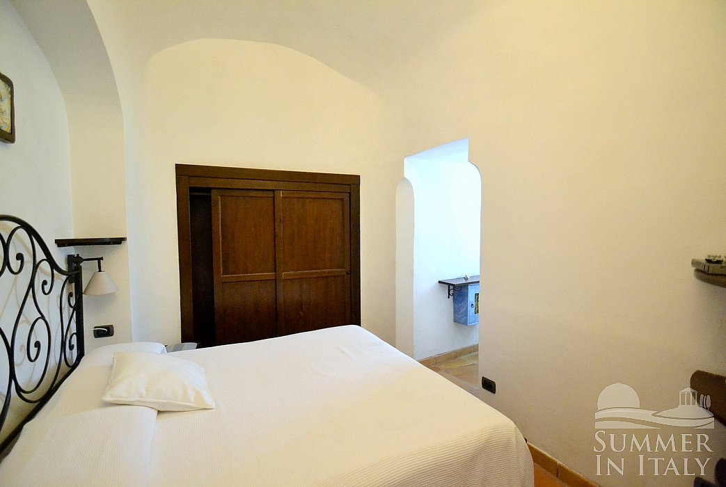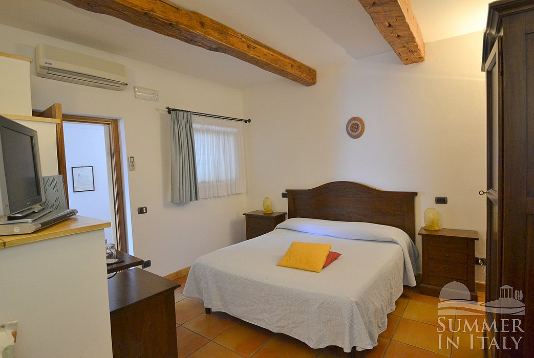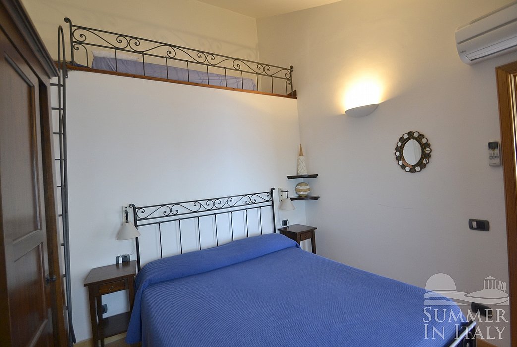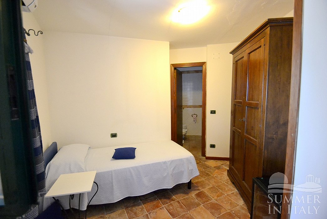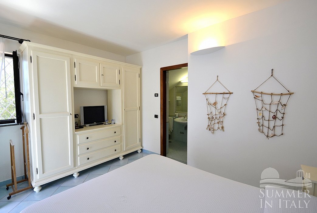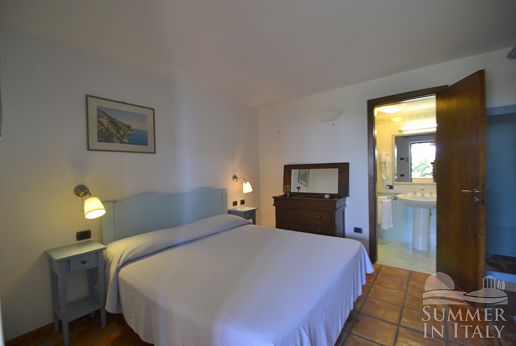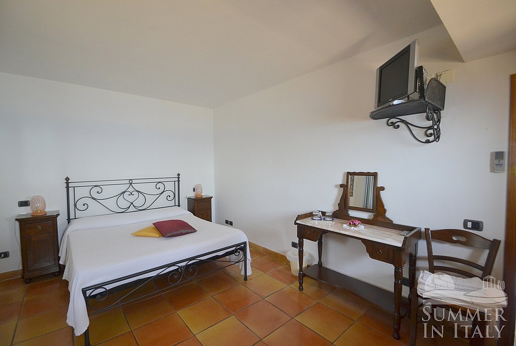 This suite is made up by three interconnected rooms: a sleeping area, a sitting area and a bathroom. You will be able to enter the tenth bedroom from the through an external access. The bedroom has a matrimonial bed (160 cm/62 inches, wider than a queen-size bed). Two additional single trundle beds are available (if requested in advance) to make it a quadruple room. In this room you will find a satellite television (local channels). From the bedroom you will be able to enter the small terrace with a view of the sea and of the coastline through a French door. The room also has a window with a view of the sea. The bedroom is equipped with an air conditioning/heating unit. This bedroom has an en-suite bathroom, equipped with a washbasin, a toilet, a fully enclosed shower and a hairdryer.