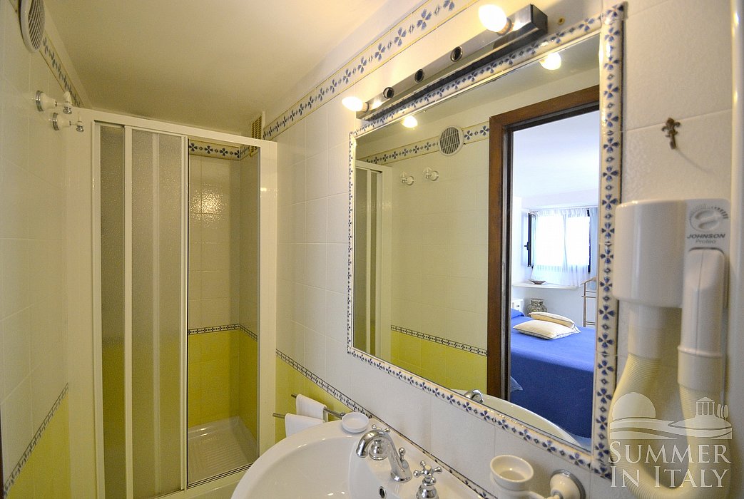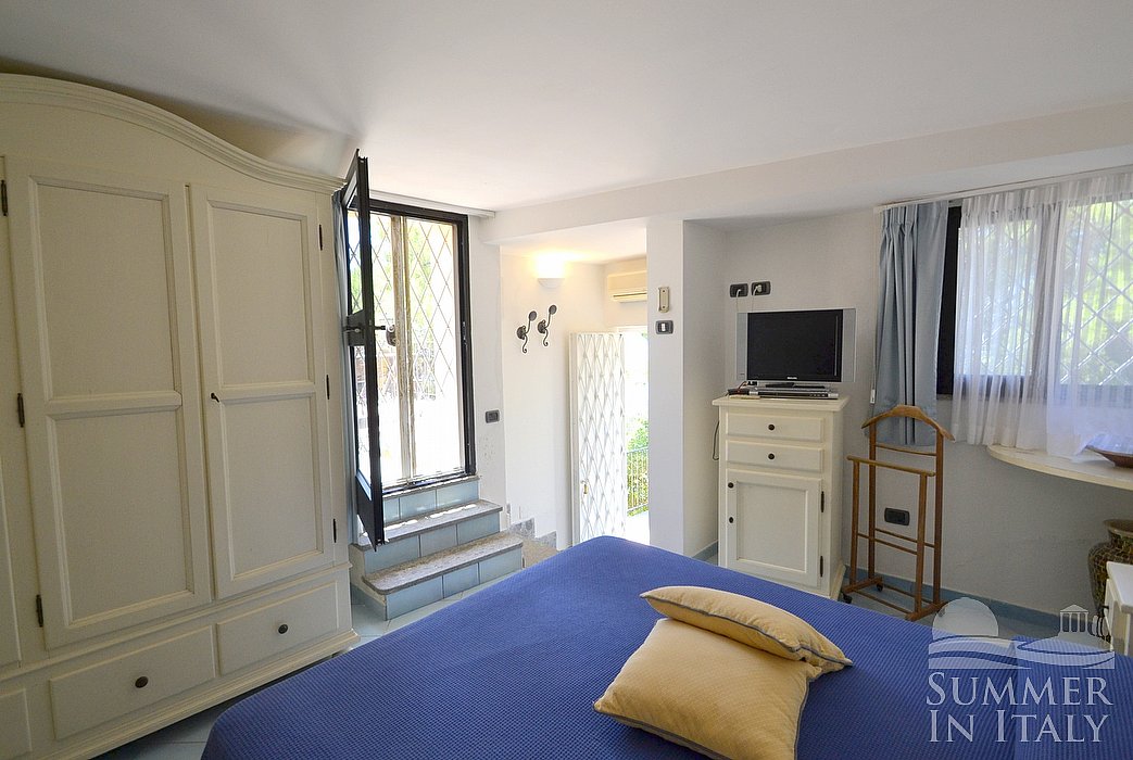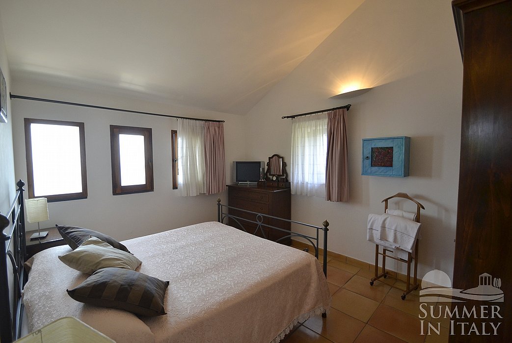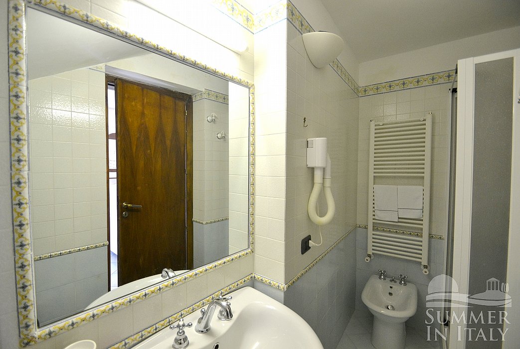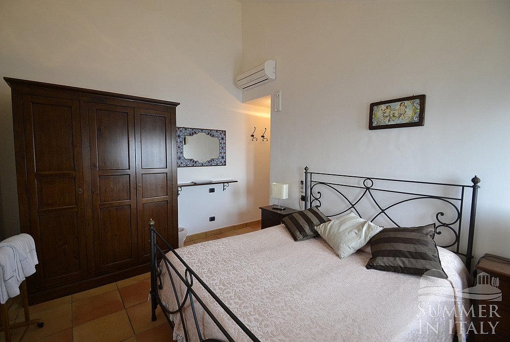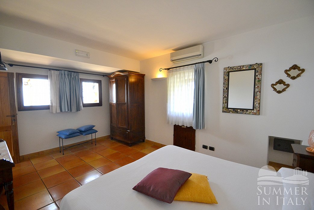 This suite is made up by three interconnected rooms: a sleeping area, a sitting area and a bathroom. You will be able to enter the tenth bedroom from the through an external access. The bedroom has a matrimonial bed (160 cm/62 inches, wider than a queen-size bed). Two additional single trundle beds are available (if requested in advance) to make it a quadruple room. In this room you will find a satellite television (local channels). From the bedroom you will be able to enter the small terrace with a view of the sea and of the coastline through a French door. The room also has a window with a view of the sea. The bedroom is equipped with an air conditioning/heating unit. This bedroom has an en-suite bathroom, equipped with a washbasin, a toilet, a fully enclosed shower and a hairdryer.
