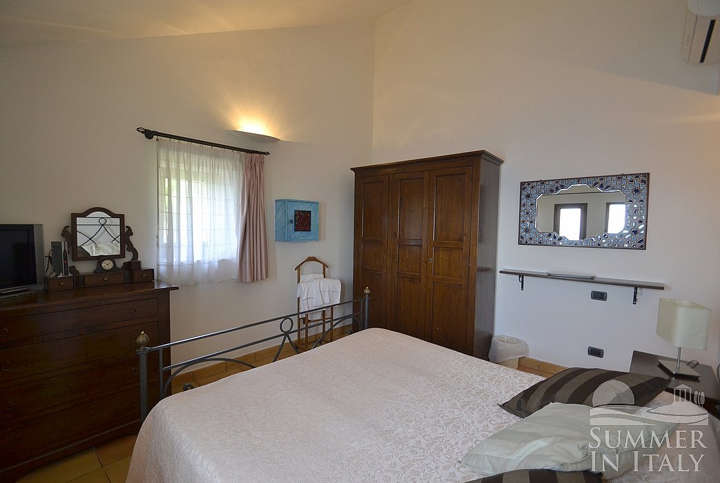 The swimming pool is 4.5 meters (14.8 feet) large by 8 meters (26 feet) long, from 1.10 meter (3.60 feet) to 1.90 meters (6.2 feet) deep. The swimming pool can be covered by a telescopic pool enclosure. The swimming pool area is equipped with tables, chairs, sun umbrellas, deck chairs, sun loungers, a swing, hammocks and external showers. By the pool you will also find a bathroom which is equipped with a washbasin and a toilet. From the swimming pool you will enjoy an enchanting view of the sea. The pool is open all year round.