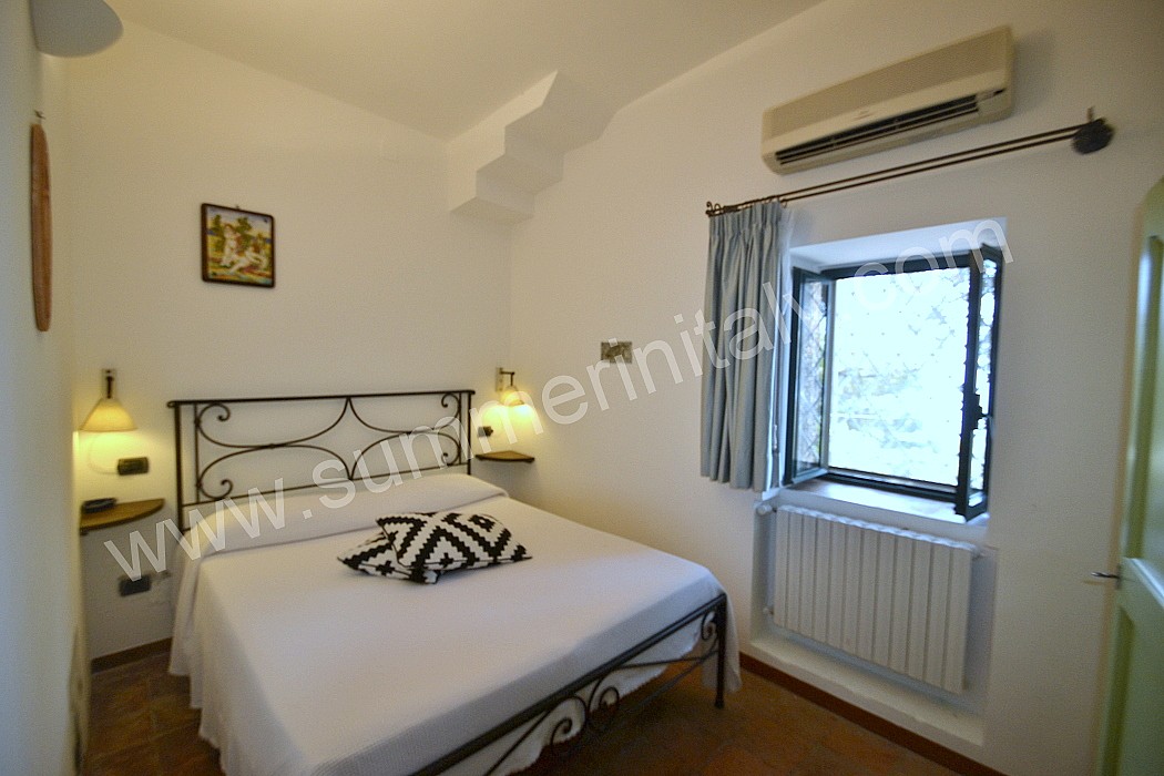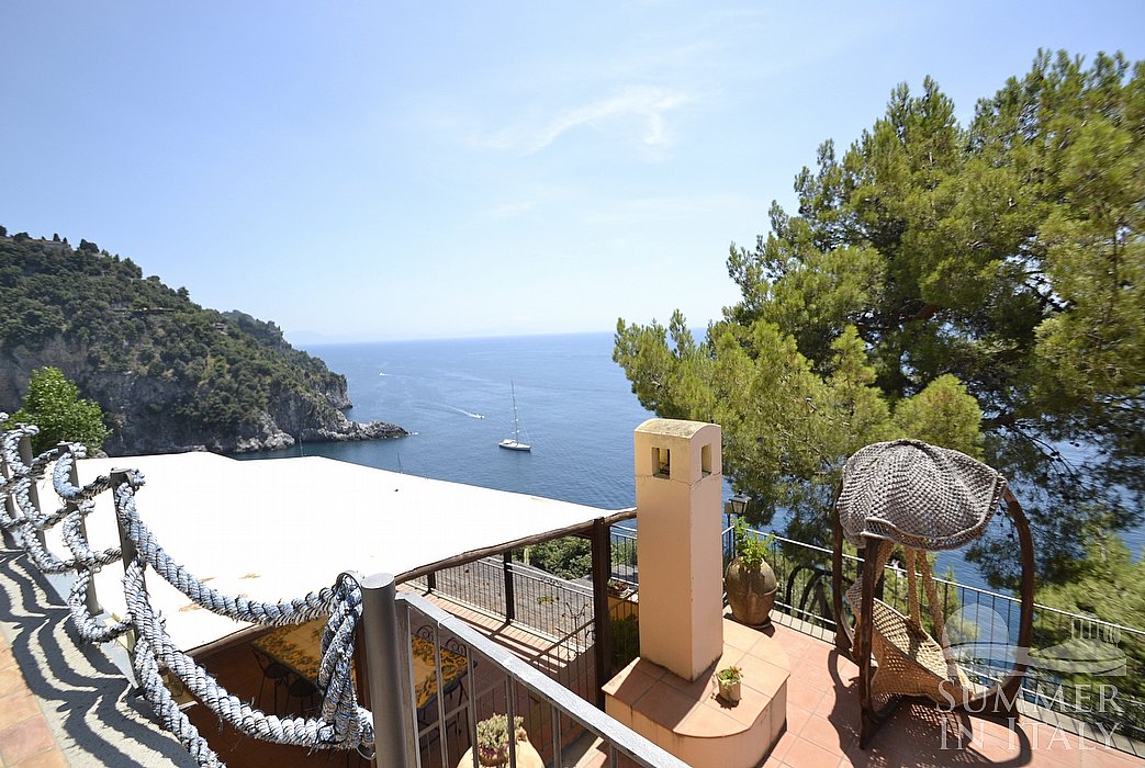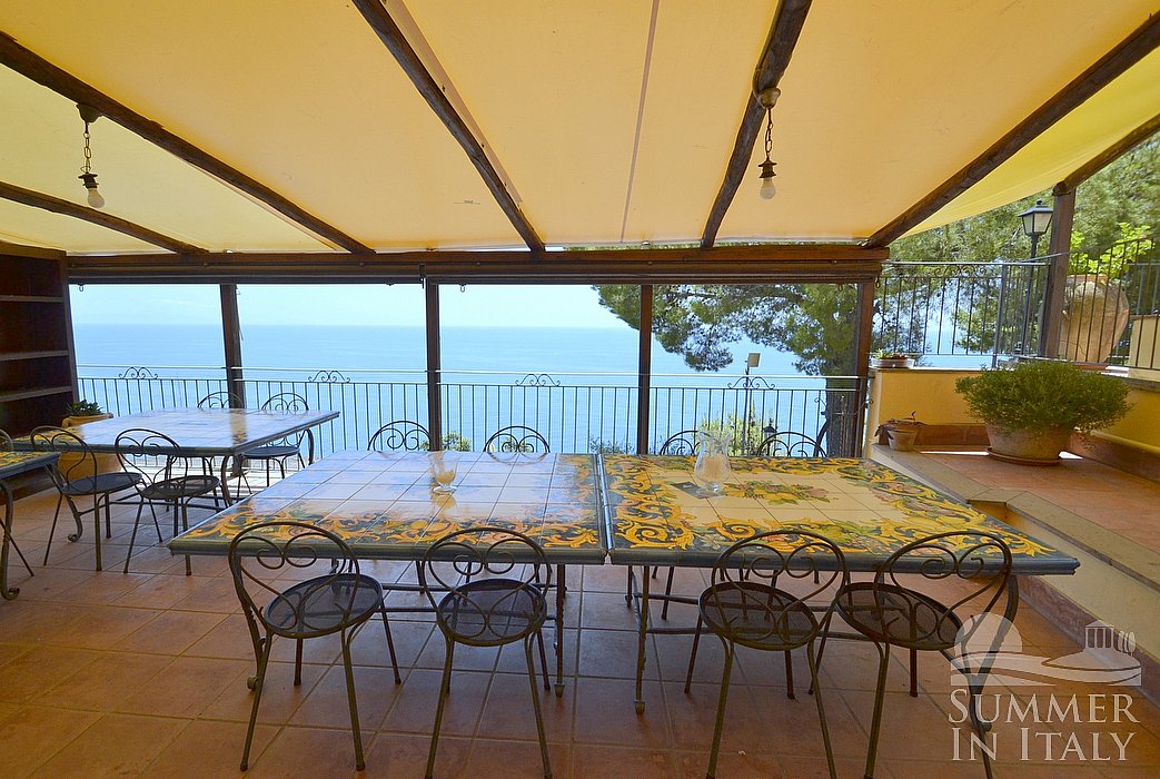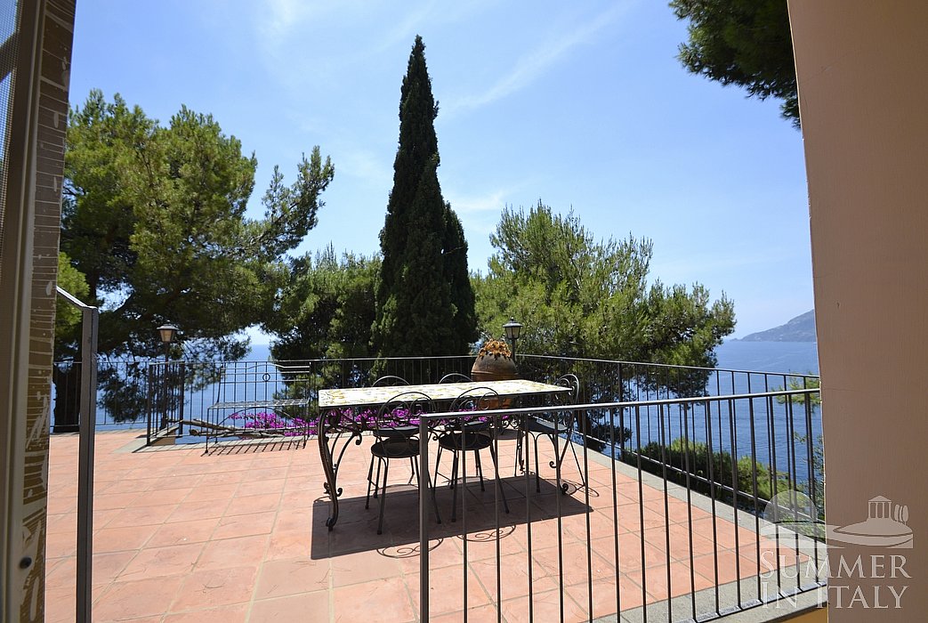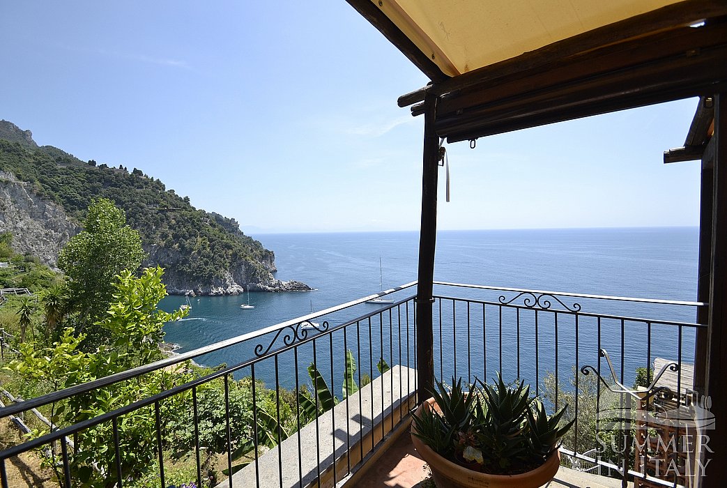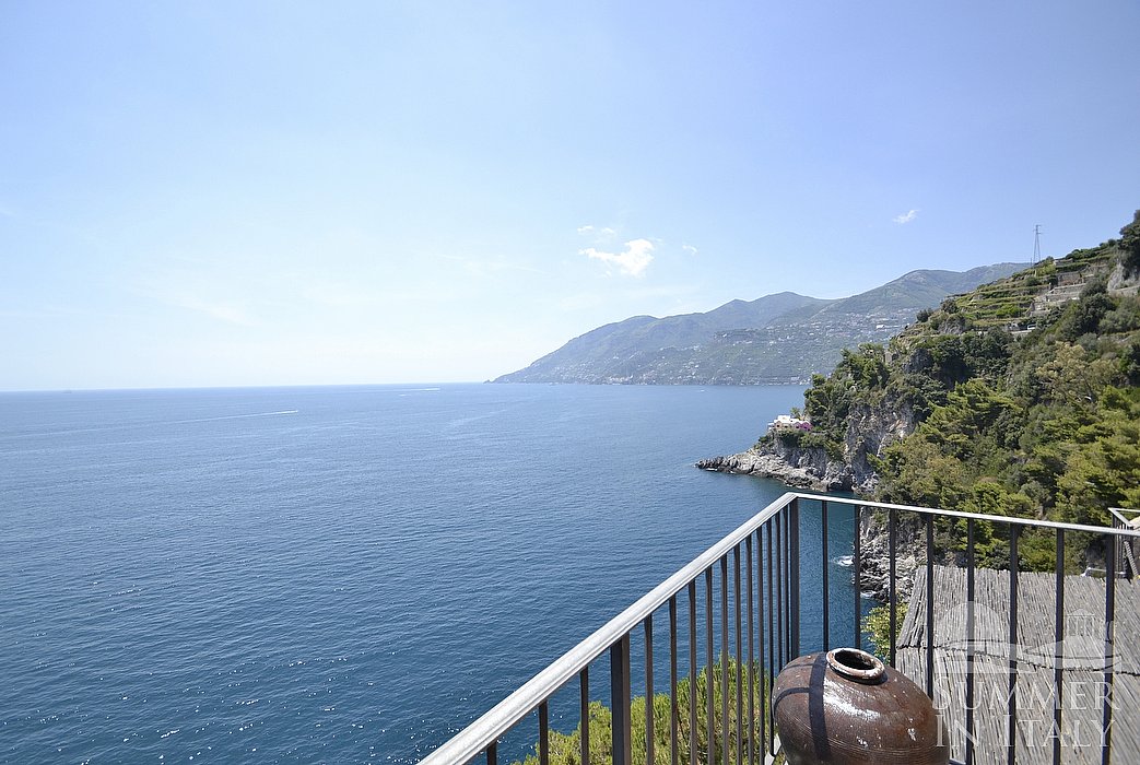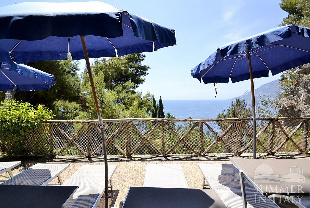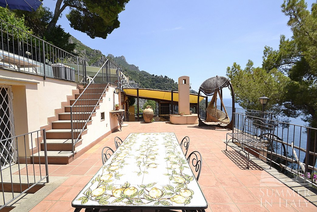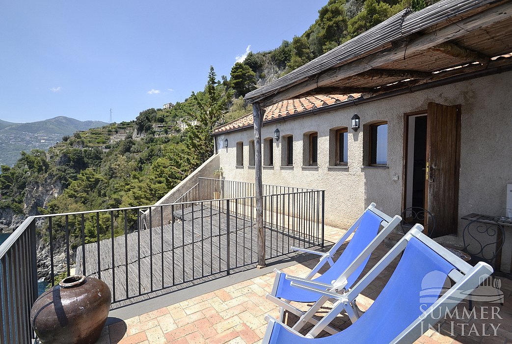 The second terrace is 20 square meters (215 square feet) large. You will reach it from the living room going up an external stairway which consists of approximately 30 steps. It is partly shaded by a pergola with a bamboo roof. It is equipped with two sun loungers. From the terrace you will enjoy a breathtaking view of the sea and of the coast of Amalfi.
