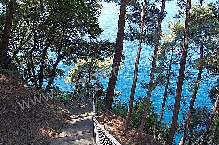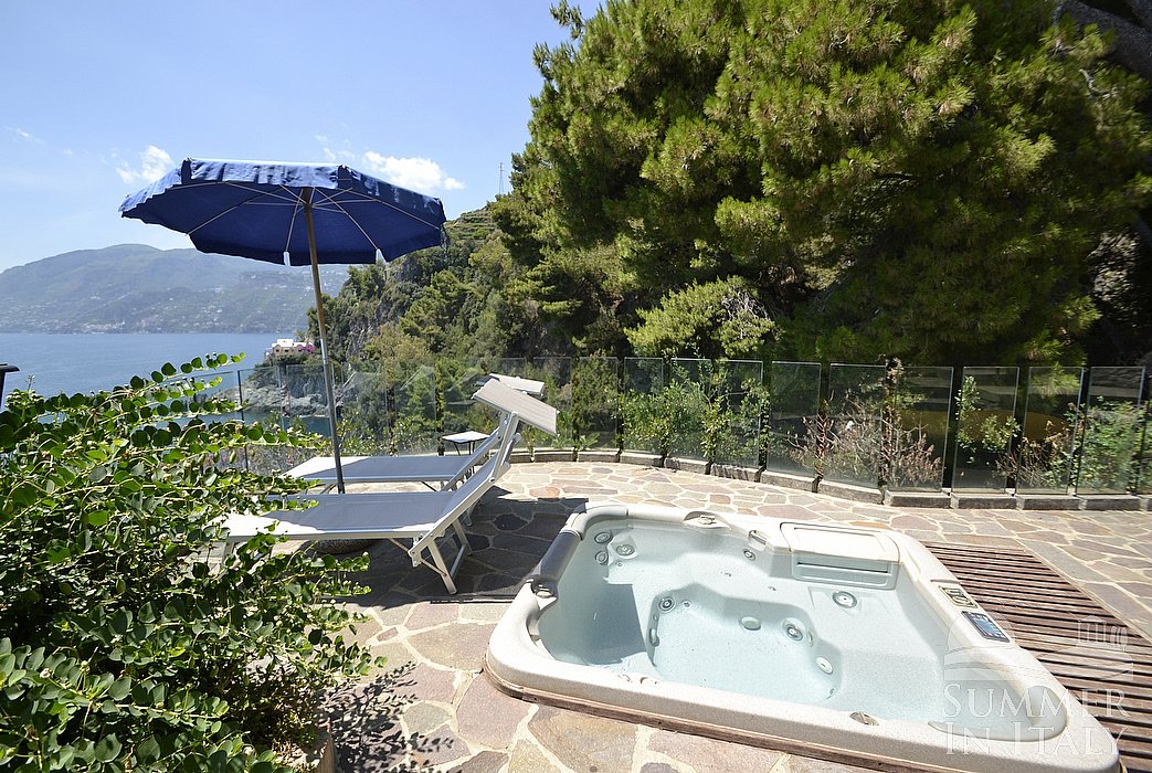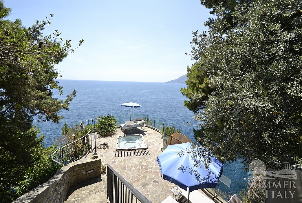 From the property you will have a direct access to the sea through a concrete platform. You will reach it from the first patio going down a private walkway that is cut into the rocky cliff and includes approximately 220 stairway steps. The area is equipped with four deck chairs and an external shower.