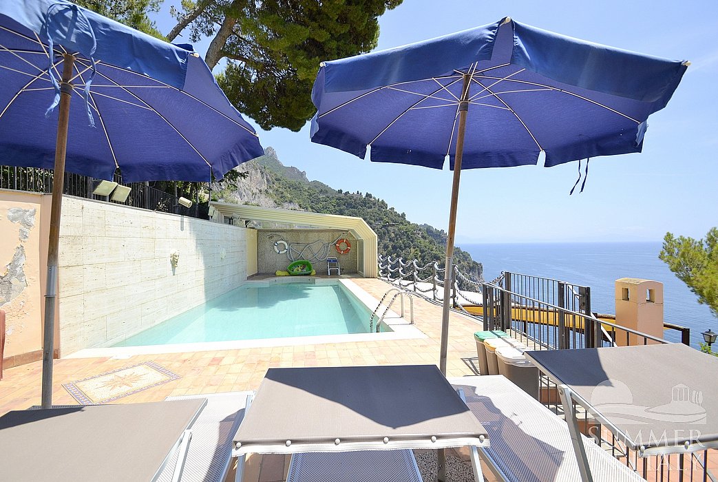 Villa Don Parafan Grande is a characteristic ancient watch tower built sheer above the sea and with direct access to the sea. It sleeps 20 people. From Villa Don Parafan Grande you will enjoy a breathtaking view of the sea and of the coast of Amalfi. Villa Don Parafan Grande is 400 square meters (4300 square feet). It features a private swimming pool, direct access to the sea, wide private terraces with a view of the sea, a private garden, air conditioning (please read description below to check in which rooms the units are installed), winter heating and WI-FI Internet access.