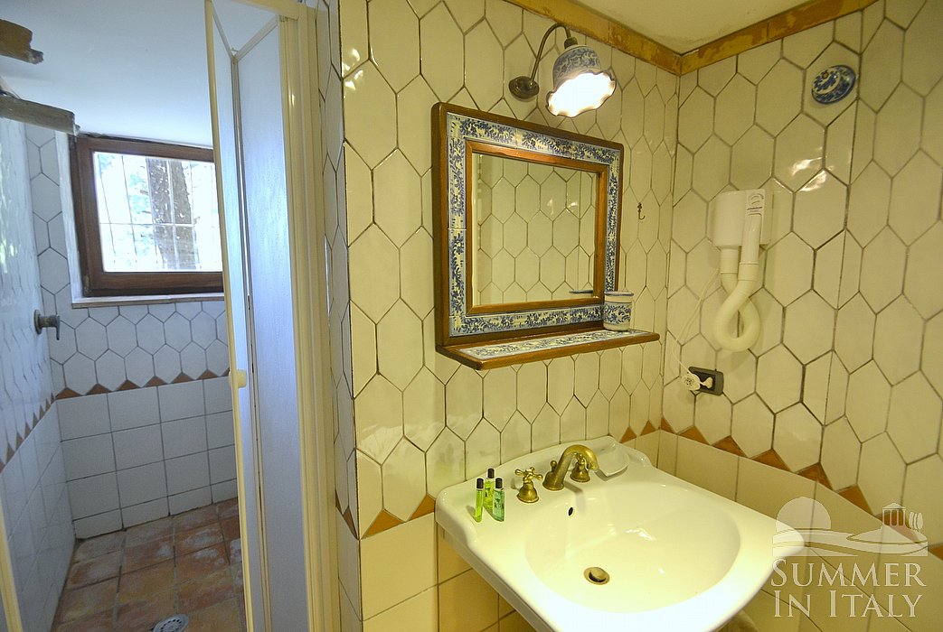 The rooms are located in two buildings: the medieval tower and the annex. From the entrance gate you will reach the annex descending approximately 115 stairway steps. The swimming pool is close by the annex. From the annex you will reach the medieval tower descending approximately 110 steps (for a total of 225 from the entrance gate). From the medieval tower you will reach the Jacuzzi pool along a walkway which includes approximately 55 stairway steps. From the medieval tower you will reach the sea descending approximately 223 stairway steps (for a total of approximately 448 from the entrance gate, or approximately 333 from the annex).